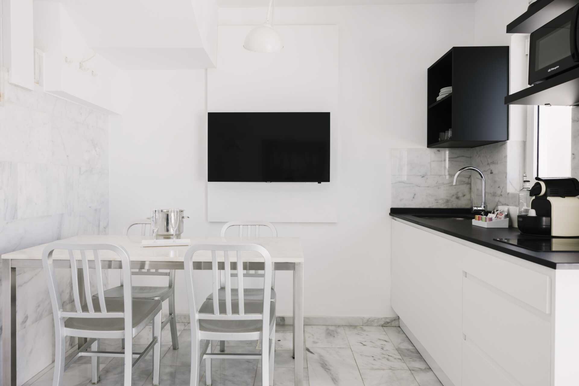 Tvårumslägenhet deluxe med balkong eller terrass och begränsad havsutsikt. Några lägenheter är i etage. Solsängar på uteplatsen och ett lugnt, soligt läge som är hotellets bästa. Sovrum och kombinerat vardagsrum med minikök. Två enkelsängar. Möjlighet till extrabädd i bäddsoffa. Minikök med kokplattor, kylskåp, kaffebryggare, brödrost, vattenkokare och enkel köksutrustning. Wifi och luftkonditionering ingår. Deponering mot avgift. Tv med internationella kanaler. Morgonrockar och tofflor. Hårtork. Badrum med dusch och wc. Städning 5 ggr/vecka.