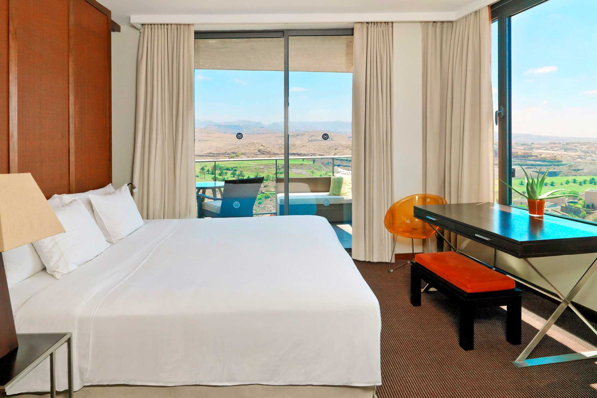 Deluxerum plus med balkong och utsikt mot golfbanan. En dubbelsäng eller två enkelsängar. Wifi, luftkonditionering och deponering ingår. Litet kylskåp. Tv och internationella kanaler. Morgonrock och tofflor. Hårtork. Badrumsartiklar. Badrummet har dusch med panoramautsikt och separat badkar samt wc. Städning 7 ggr/vecka.
