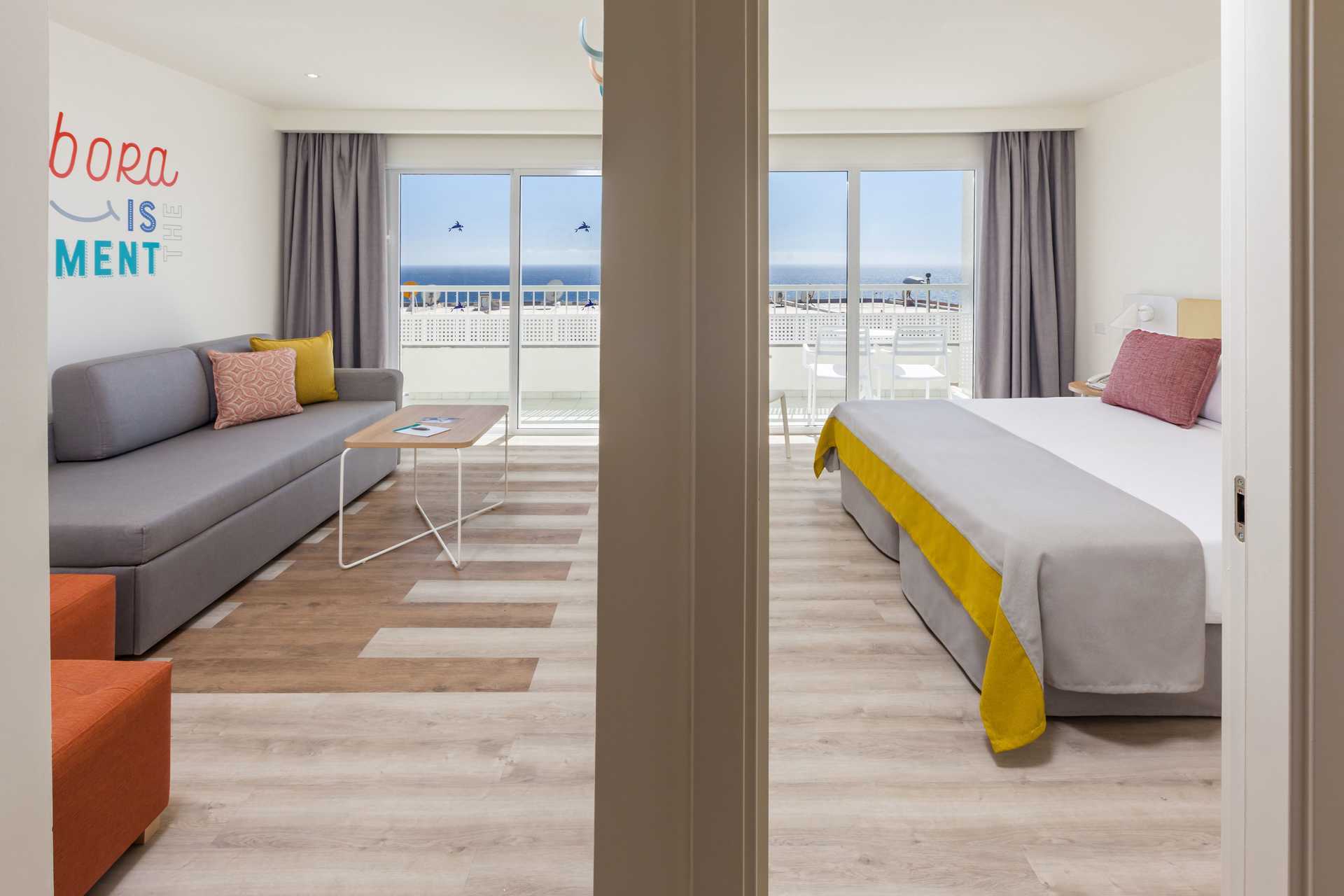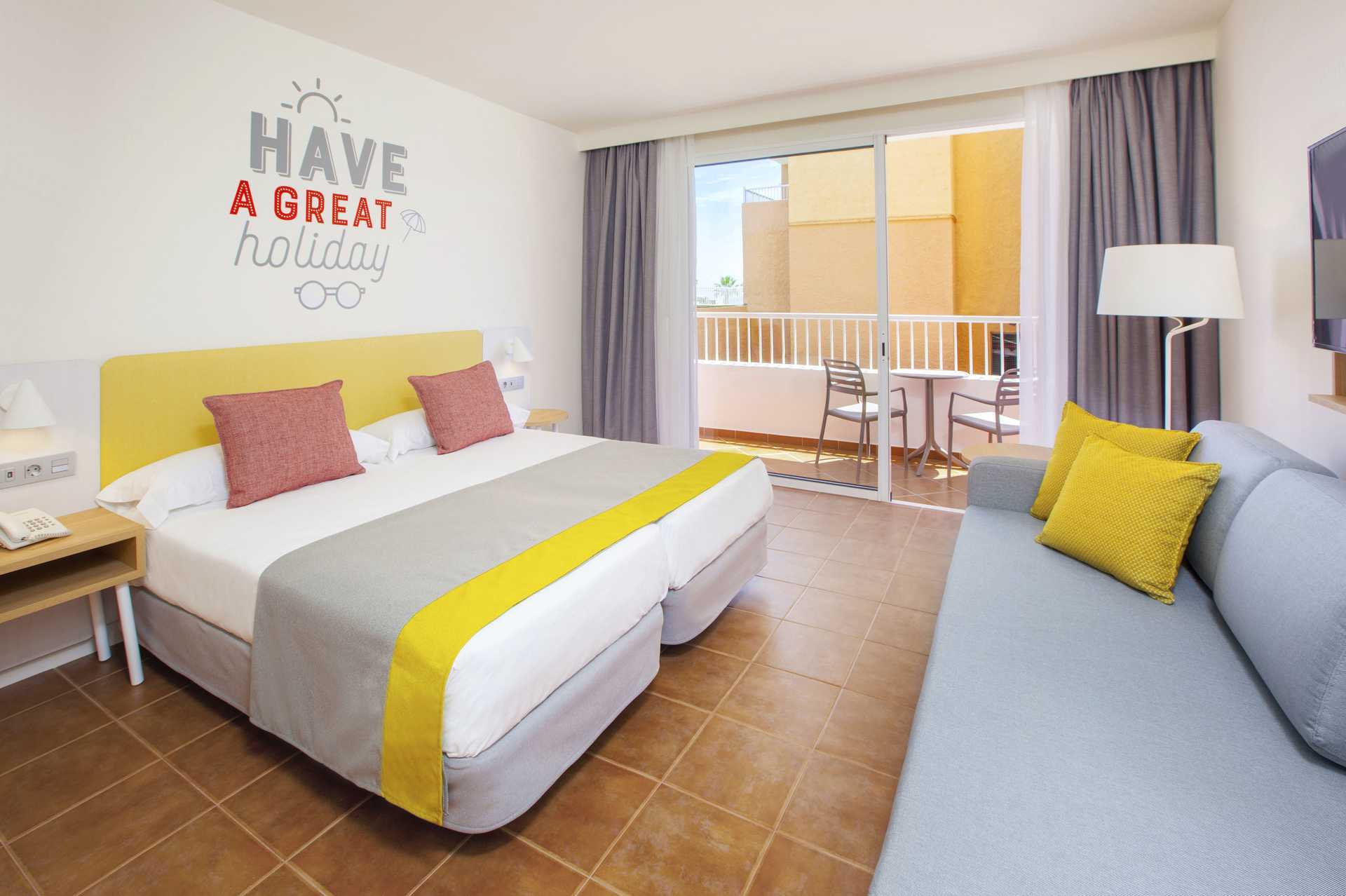 Familjerum med balkong eller terrass. Rummen med terrass har ett lektält för barn i rummet. Två enkelsängar. Möjlighet till extrabäddar i bäddbar soffa. Wifi och luftkonditionering ingår. Deponering mot avgift. Minibar mot avgift. Vattenkokare. Tv med internationella kanaler. Hårtork. Badrum med dusch och wc. Städning 7 ggr/vecka. Barn under två år räknas in i maxantalet personer i rummet.