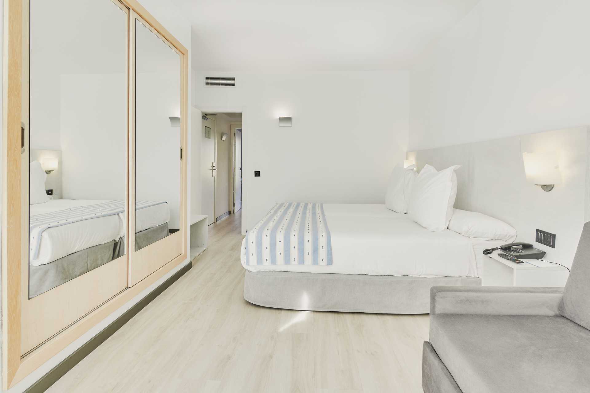 Familjerum med balkong eller terrass. Familjerummen ligger nära poolerna och består av två sovrum, ett med en dubbelsäng och ett med två enkelsängar. Möjlighet till extrabädd i bäddsoffa. Wifi och luftkonditionering ingår. Deponering mot avgift. Kylskåp. Vattenkokare samt kaffe och te. Tv med internationella kanaler. Hårtork. Badrum med dusch och wc. Städning 7 ggr/vecka.