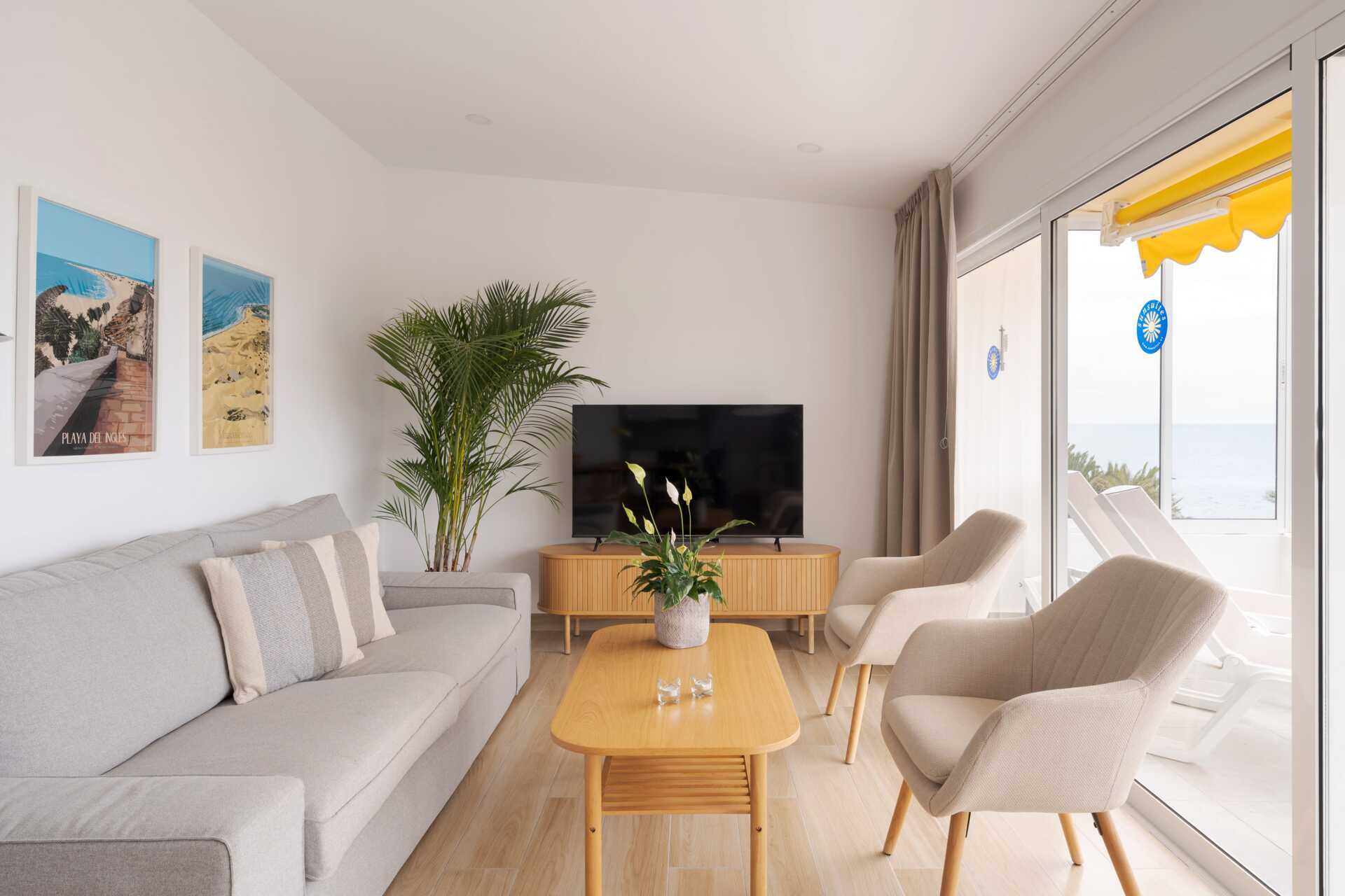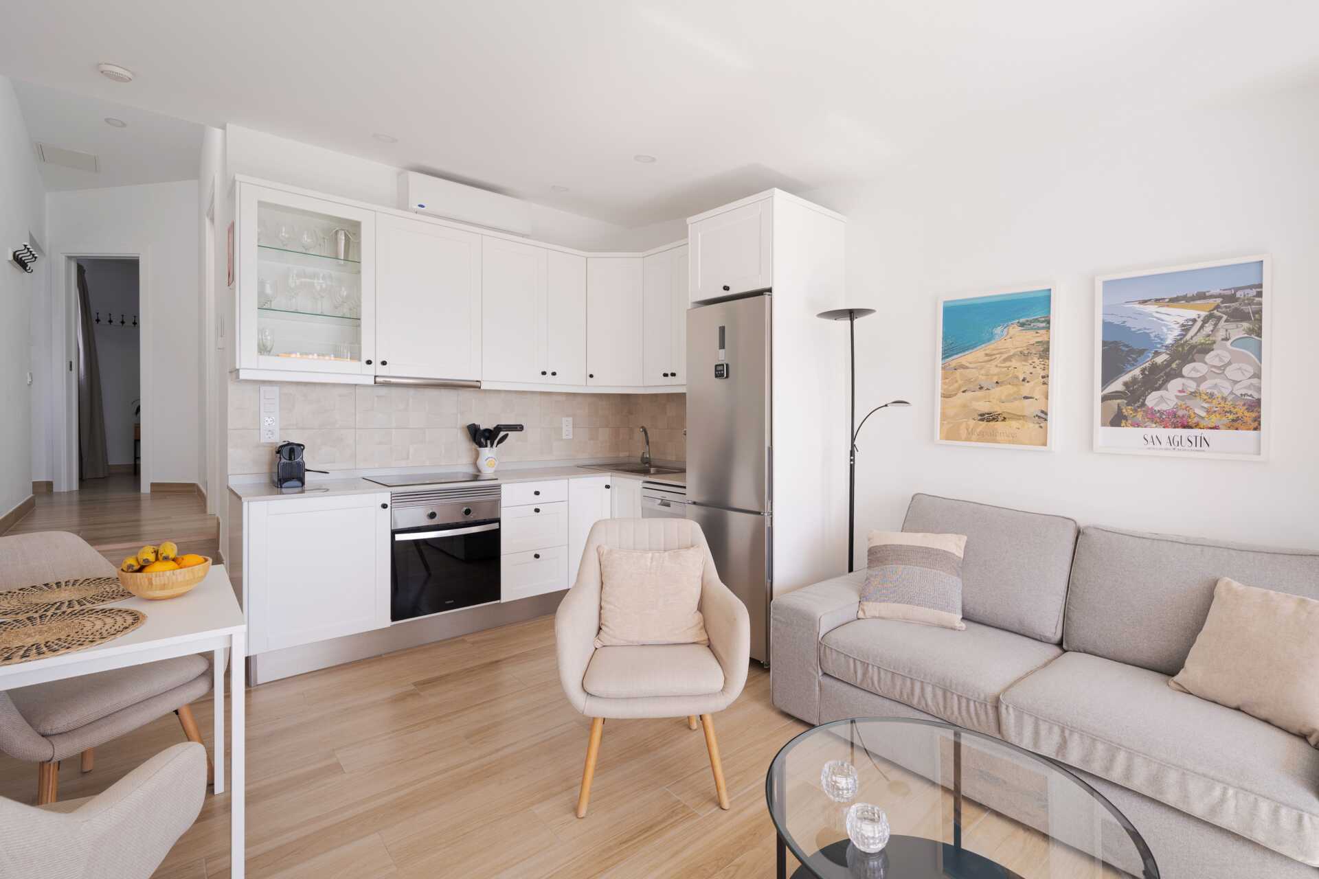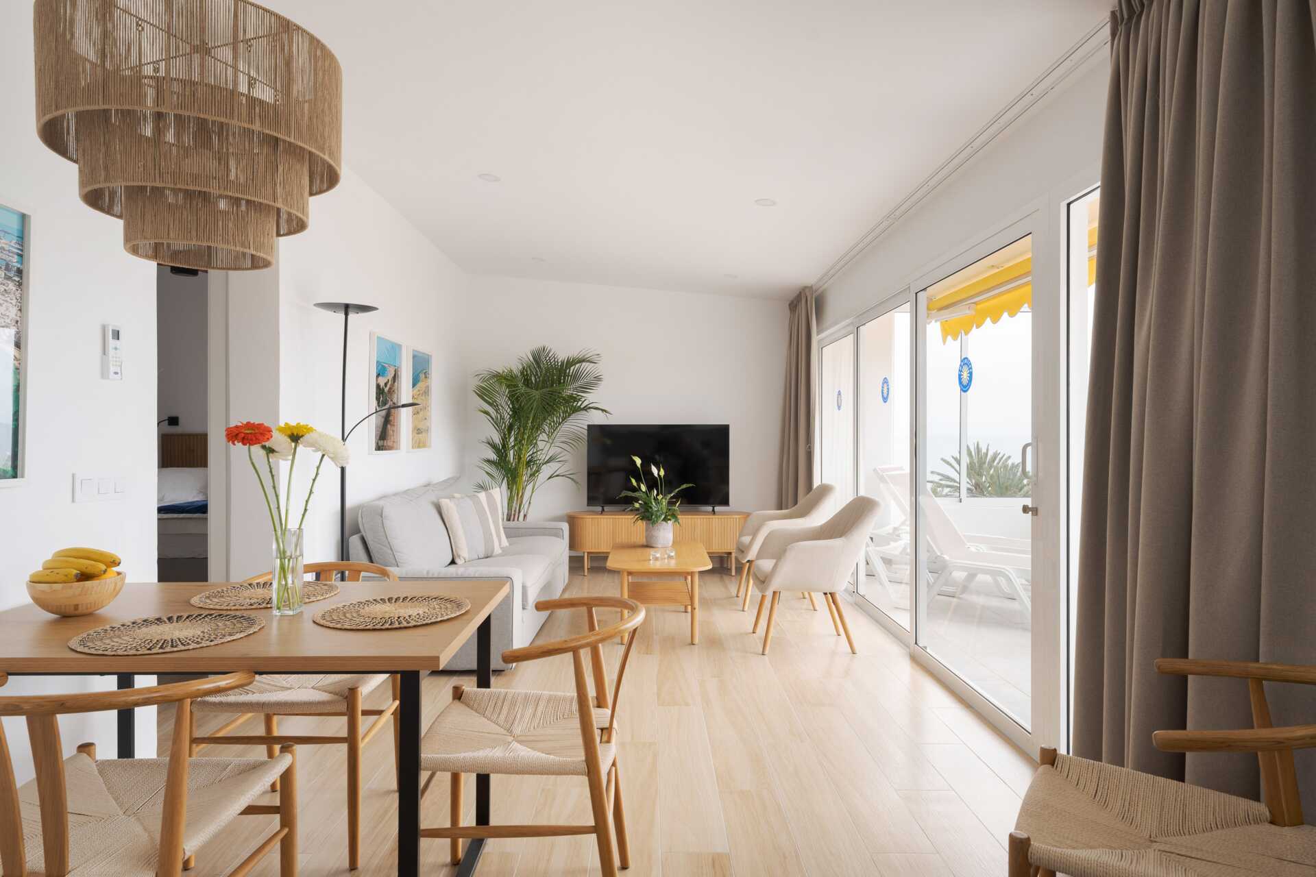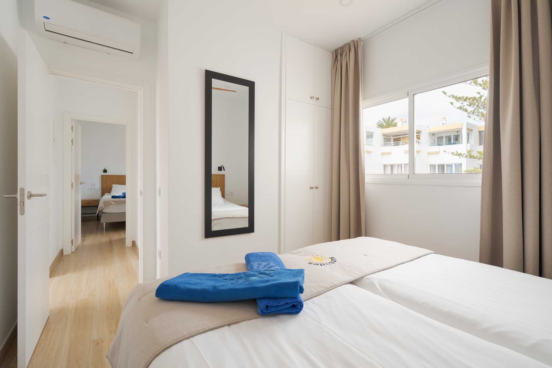 Tvårumslägenhet med balkong eller terrass - alla med unik utformning och inredning. Vikbar glasvägg mellan uteplatsen och vardagsrummen. Sovrum med två enkelsängar och ett kombinerat vardagsrum/minikök. Välutrustad kök med kokplattor, ugn, kylskåp med frys, diskmaskin, kaffebryggare, Nespressomaskin och vattenkokare samt rikigt bra köksutrustning. Wifi och luftkonditionering ingår. Takfläkt. Tv med internationella kanaler. Bluetooth-högtalare. Tvättmaskin. Poolhanddukar, badrockar och tofflor. Hårtork. Badrum med dusch och wc. Städning 2 ggr/vecka. I vissa av lägenheterna finns några trappsteg.