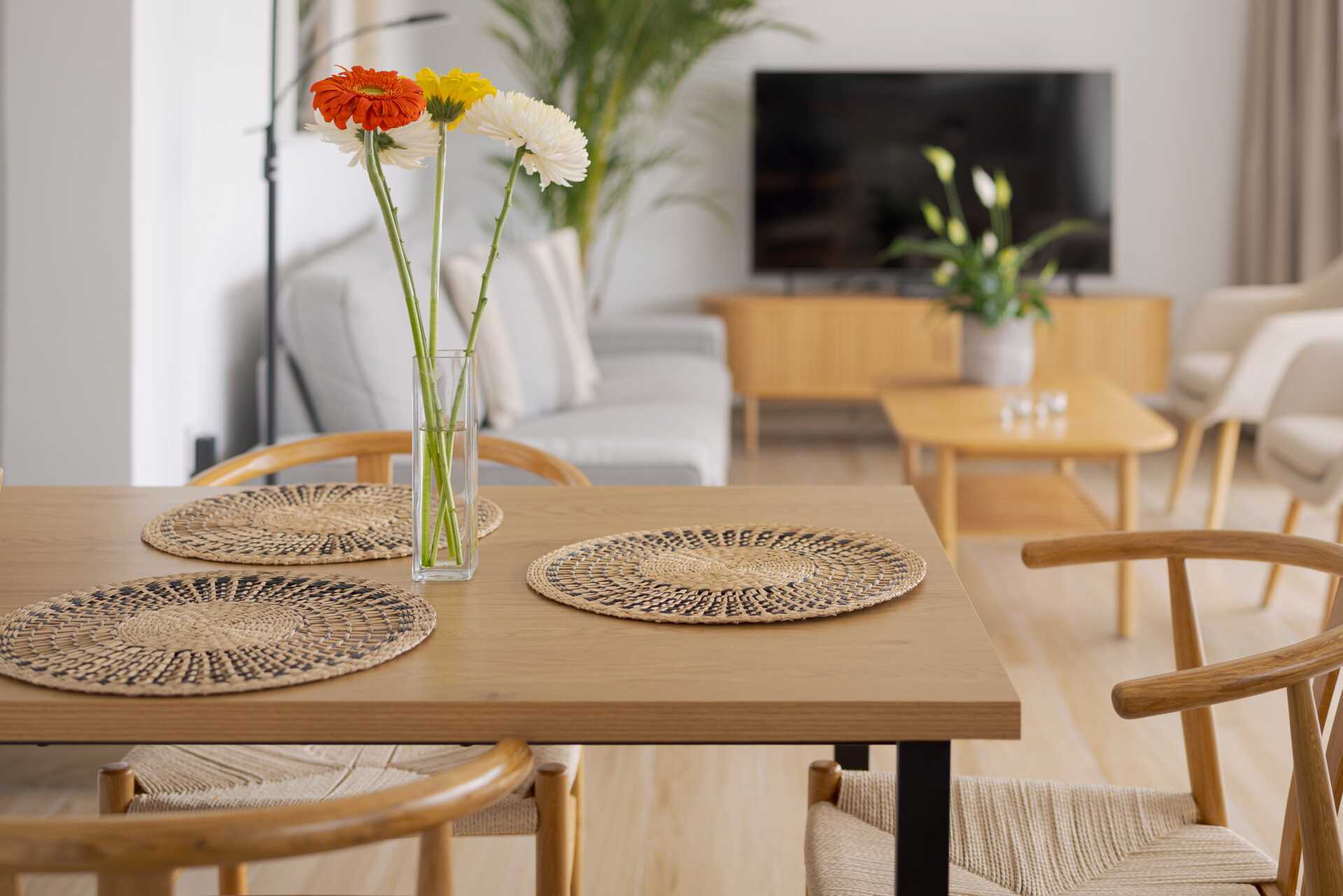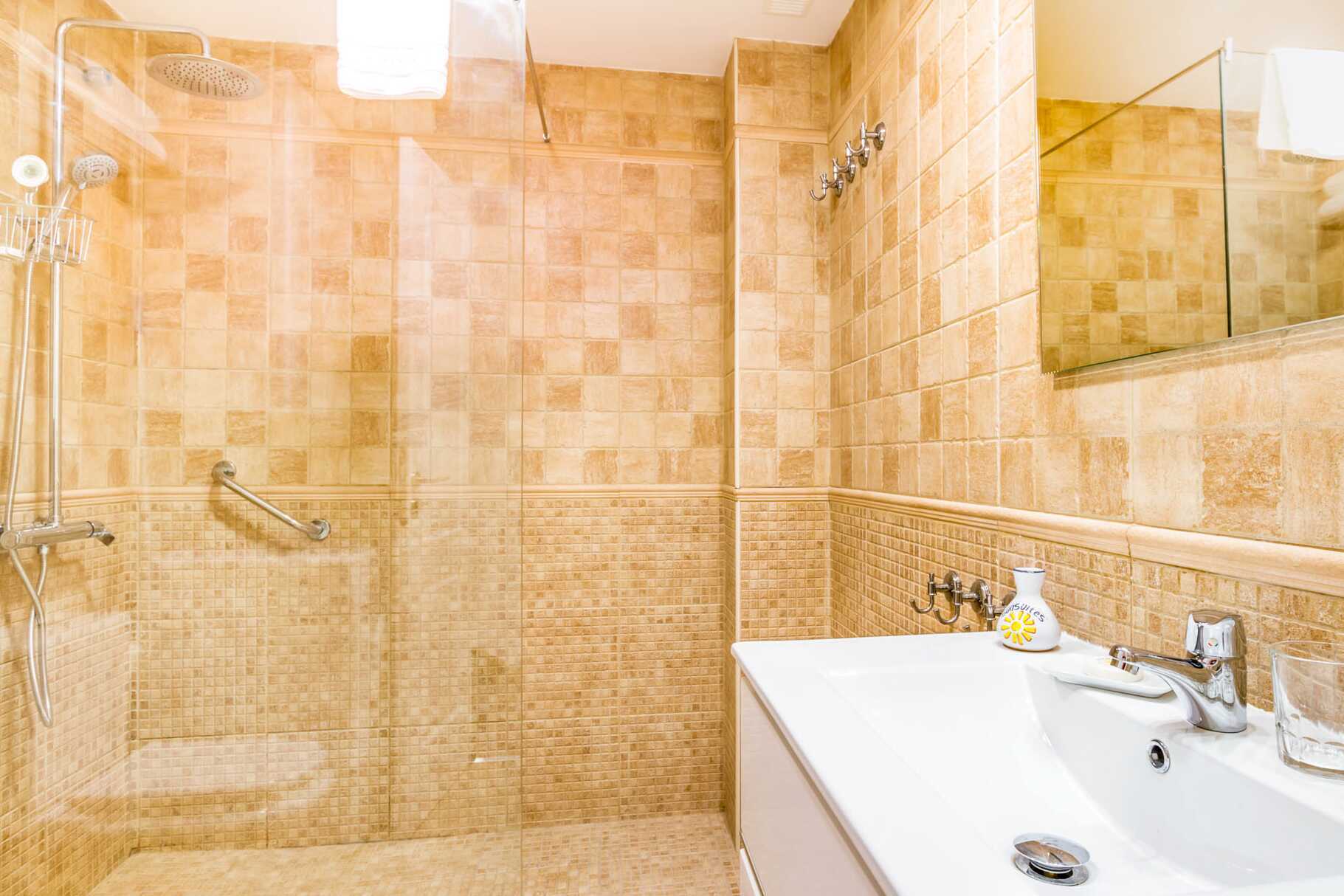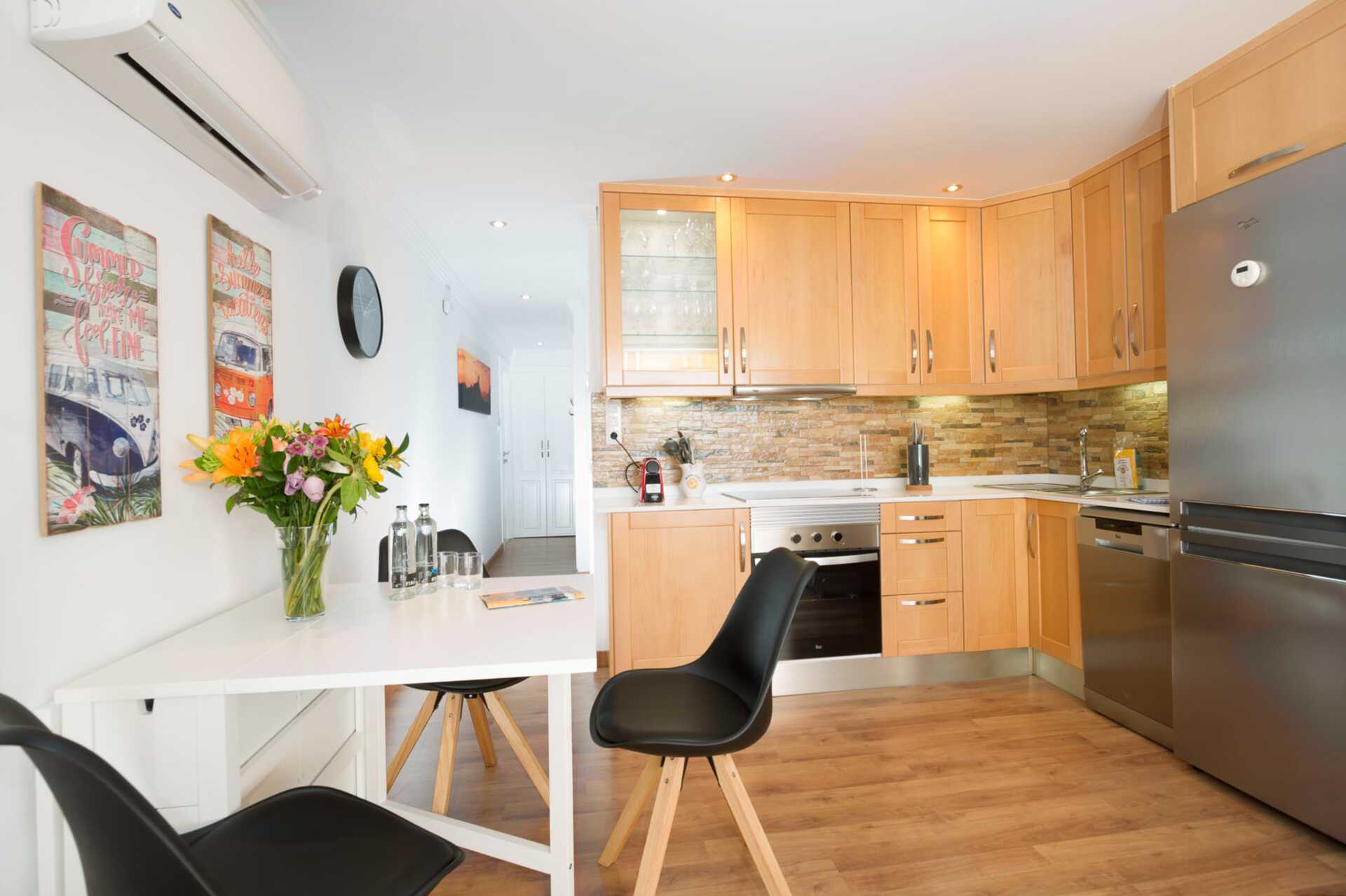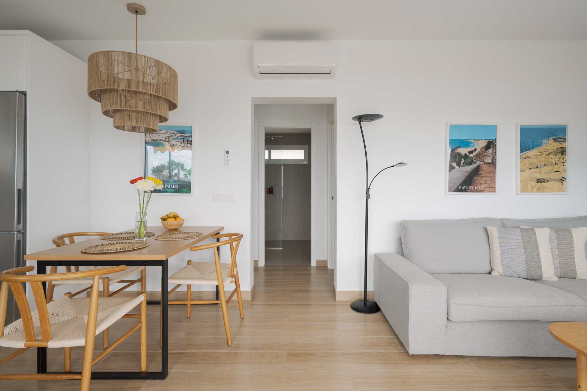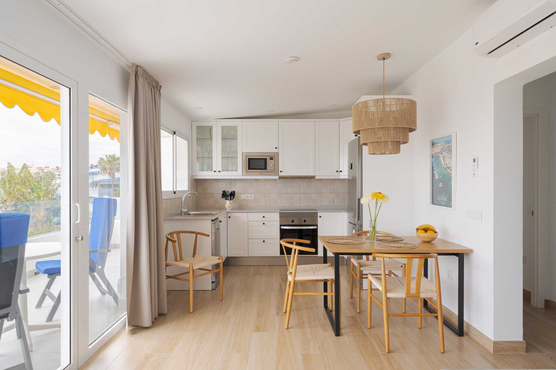Tvårumslägenhet med balkong eller terrass - alla med unik utformning och inredning. Vikbar glasvägg mellan uteplatsen och vardagsrummen. Sovrum med två enkelsängar och ett kombinerat vardagsrum/minikök. Välutrustad kök med kokplattor, ugn, kylskåp med frys, diskmaskin, kaffebryggare, Nespressomaskin och vattenkokare samt rikigt bra köksutrustning. Wifi och luftkonditionering ingår. Takfläkt. Tv med internationella kanaler. Bluetooth-högtalare. Tvättmaskin. Poolhanddukar, badrockar och tofflor. Hårtork. Badrum med dusch och wc. Städning 2 ggr/vecka. I vissa av lägenheterna finns några trappsteg.