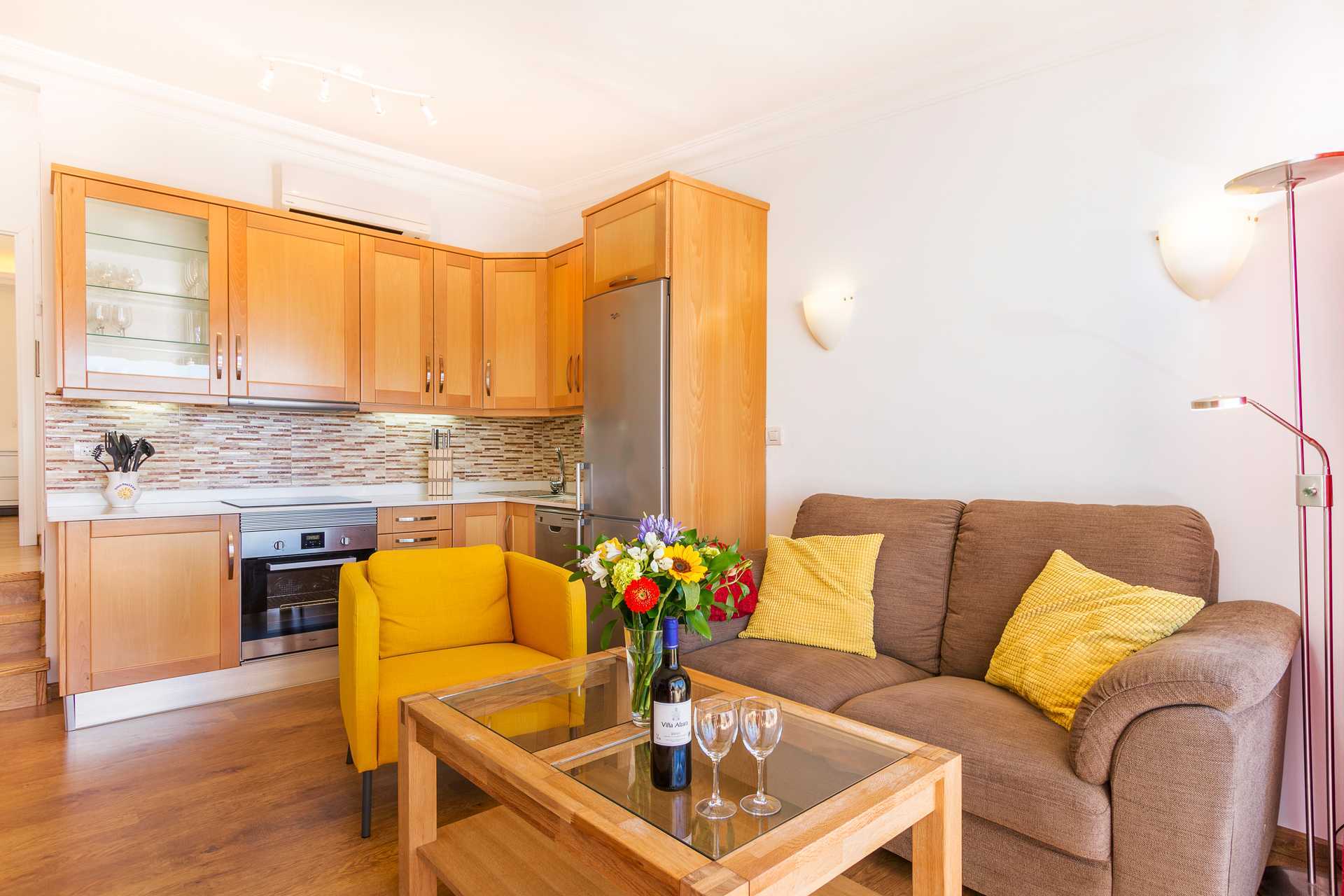 Tvårumslägenhet med balkong eller terrass - alla med unik utformning och inredning. Vikbar glasvägg mellan uteplatsen och vardagsrummen vilket gör ett luftigt stort och luftigt uterum. I vissa av lägenheterna är det tre trappsteg. Sovrum och ett kombinerat vardagsrum med ett välutrustat köksdel med kokplattor och ugn, kylskåp och frys, diskmaskin, kaffebryggare, Nespresso kaffemaskin och vattenkokare samt bra köksutrustning. Två enkelsängar. Wifi, luftkonditionering och deponering ingår. Takfläkt. Tv med internationella kanaler. Bluetooth-högtalare. Tvättmaskin. Poolhanddukar, badrock och tofflor. Hårtork. Badrum med dusch och wc. Städning 2 ggr/vecka.