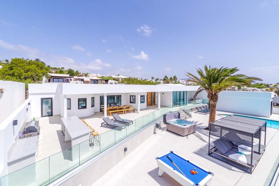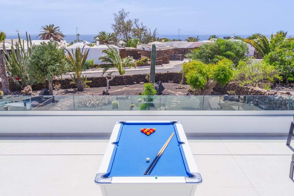 Inuti är villan extremt modern, med alla de senaste bekvämligheterna och nödvändigheterna du kan behöva på din semester med självhushåll. Köket har öppen planlösning, perfekt för att laga mat samtidigt som du underhåller dina många gäster, oavsett om det är vänner eller familj som har följt med. Med sex rymliga sovrum är denna villa idealisk för upp till tolv gäster, alla med eget luftkonditionerat* rum och gratis poolhanddukar. För en stunds hälsosam tävling, varför inte njuta av en omgång biljard medan solen går ner och du avslutar kvällen med dina närmaste.