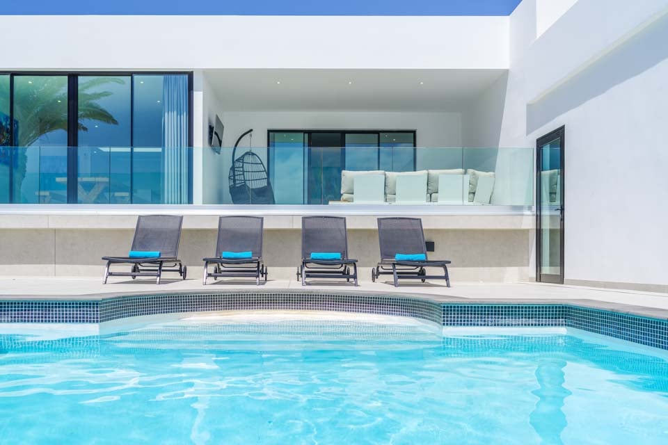 Missa inte en vistelse på Casa Yasmina! När du väl har bott där en gång, kommer du att ha bråttom att komma tillbaka igen. Även om Playa Blancas centrum ligger en kort bilresa bort, hittar du allt du kan tänkas behöva i villan. Vi älskade terrassen, ett stort utrymme fyllt med chill-out-områden, mysiga solplatser och en alldeles egen bubbelpool*. Den skuggiga terrassen ståtar med en mängd bekväma sittplatser som du längtar efter att sjunka ner i, tillsammans med en TV så att du aldrig missar den där fotbollsmatchen du måste se. De utomhusdagbäddarna har utsikt över Atlanten, en hisnande bakgrund för lite lätt läsning eller en eftermiddagscocktail medan du bäddar på solbränna.