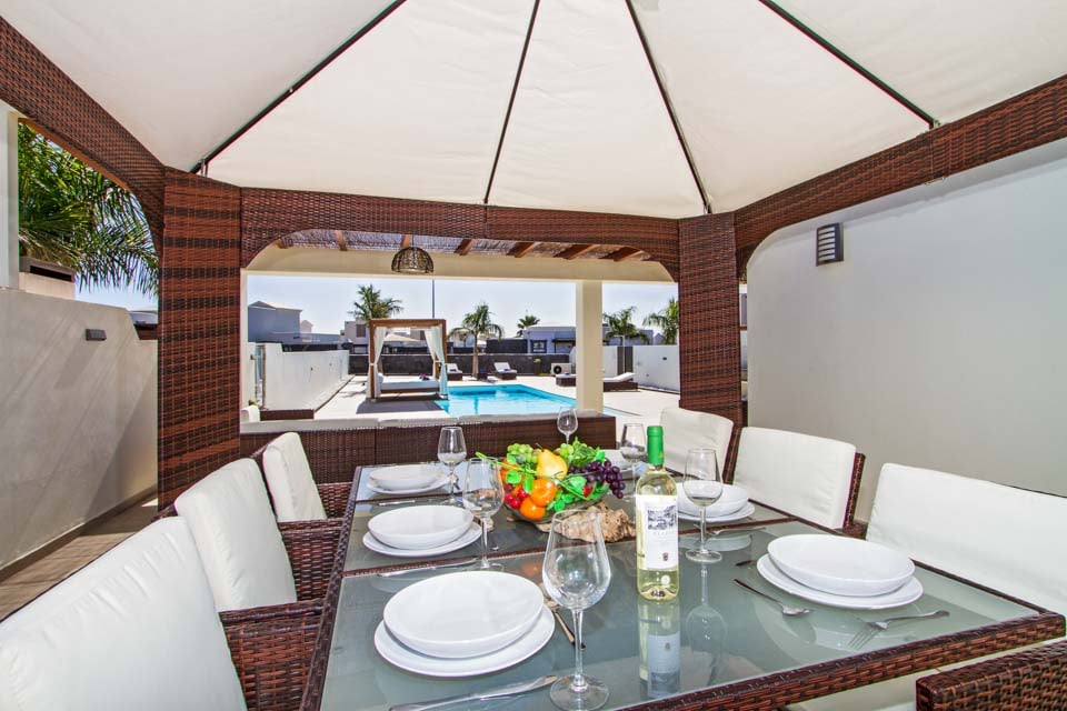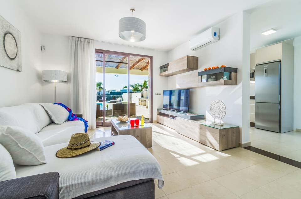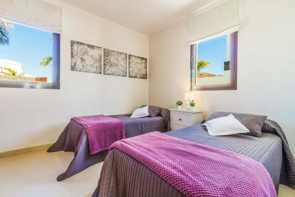 Beläget i hjärtat av ett exklusivt bostadsområde Las Maretas väster om Playa Blanca, är Villa Anibal en av tre moderna och eleganta villor fyllda med bekvämligheter för den perfekta villa-semesterupplevelsen. På bottenvåningen finns ett modernt och bekvämt vardagsrum med flera brittiska kanaler, spelkonsol och matplats för sex personer, vilket leder till ett modernt och fullt utrustat kök. Ett sovrum med två enkelsängar samt ett familjebadrum finns på denna våning. På första våningen hittar du det stora sovrummet med dubbelsäng och duschrum och ytterligare ett tvåbäddsrum. Båda sovrummen har tillgång till den rymliga terrassen. Vardagsrummet och alla sovrum har luftkonditionering för din bekvämlighet. Det rymliga utomhusområdet är där du kommer att tillbringa större delen av din tid. En fantastisk friformspool (uppvärmning ingår mellan november och april) ligger i mitten, under den stora pergolan finns gott om bekväma sittplatser i rotting och ytterligare matmöjligheter samt en tegelgrill med handfat för utomhusmåltider. En dagbädd finns vid poolen för de som vill koppla av och det finns även ett bordtennisbord och biljardbord tillgängliga för gästerna. Flera barer och restauranger ligger inom bekvämt gångavstånd och en regelbunden busstrafik till Playa Blanca stad finns också i närheten. Systervillorna Fito och Pedro ligger också i närheten för de som söker större grupper.