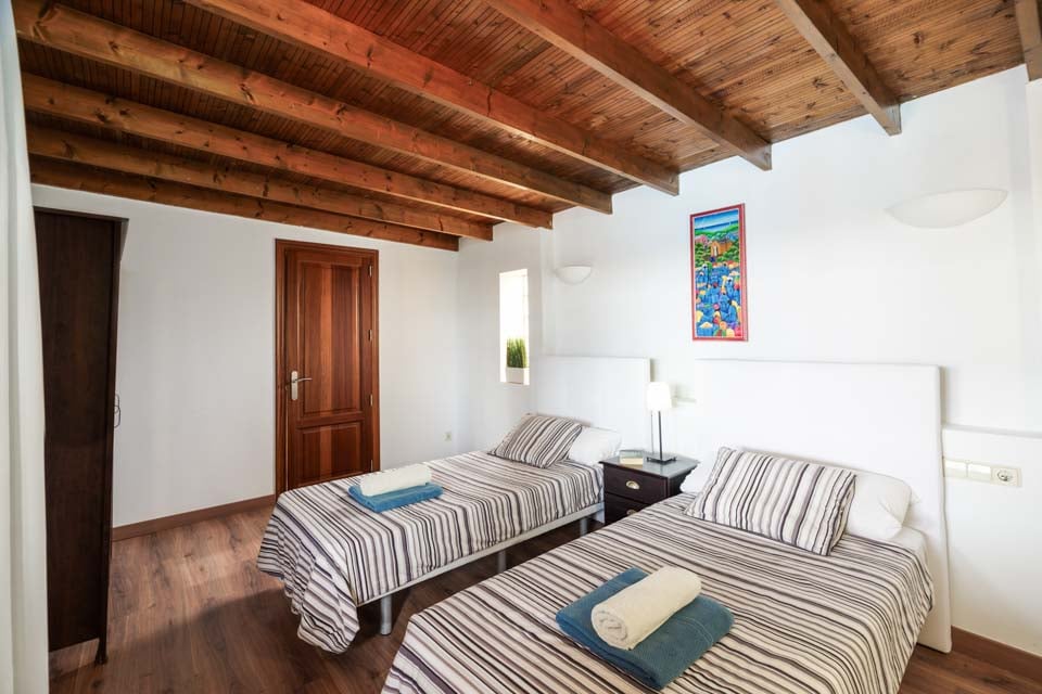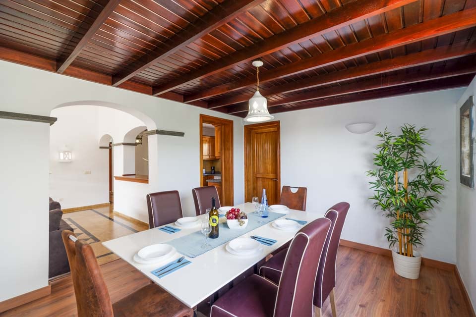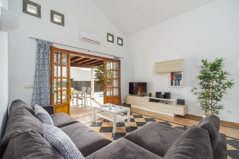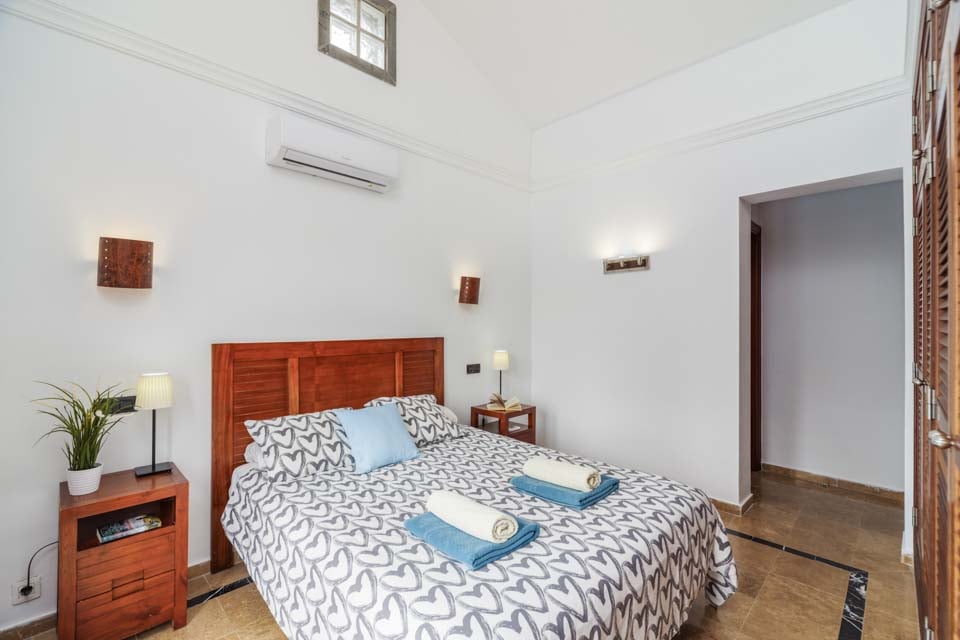 Invändigt är villan belägen i ett plan med tre välproportionerade sovrum och två badrum. Det mysiga vardagsrummet öppnar upp mot det fullt utrustade köket, där du hittar allt du kan behöva för din semester med självhushåll. Med tre luftkonditionerade sovrum är denna villa idealisk för upp till sex gäster. Se till att boka sovrummet först, som har en king size-säng och tillgång till poolkanten via altandörrar från golv till tak. Själva villan är hemtrevlig, med naturligt solljus i alla rum, mjuka möbler och gratis wifi.