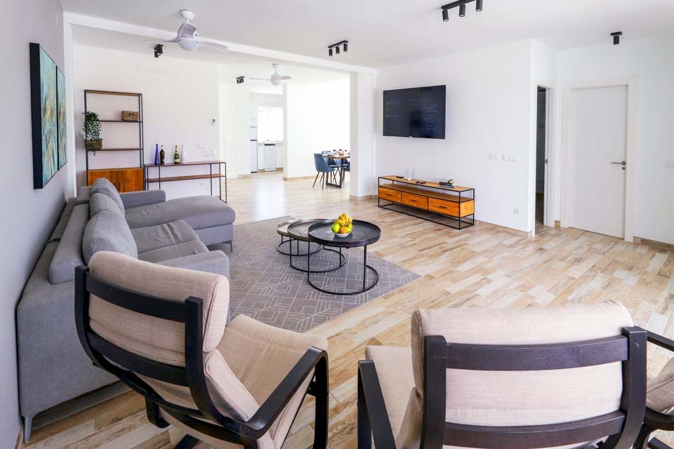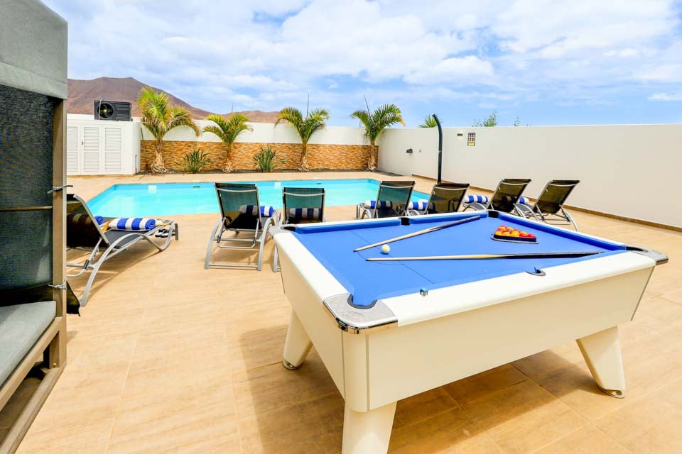 Säg Heja till Villa Bella! Denna vackra villa är perfekt för bokningar som vill ha det bästa av två världar. Villan har en imponerande terrass, perfekt för att koppla av vid poolen på en solig dag. Det finns mycket att göra i Villa Bella, som har både biljardbord och bordtennisbord för din underhållning. Om du föredrar sällskapet av en god bok, då är dagbädden utomhus precis något för dig. I skuggan av solen är denna mysiga plats på terrassen perfekt för en middagslur. Det finns också en skuggig terrass och ett matbord i bohemisk stil för måltider utomhus. Varför inte köpa färska råvaror från den lokala mataffären och laga några läckra hemlagade tapas eller färska skaldjur?