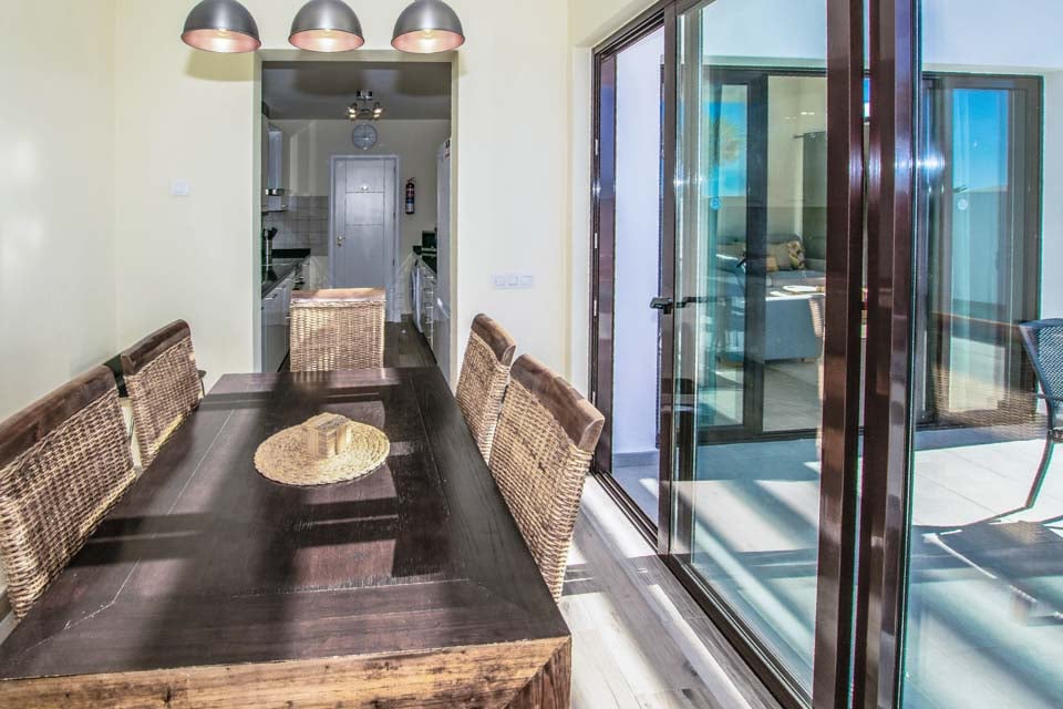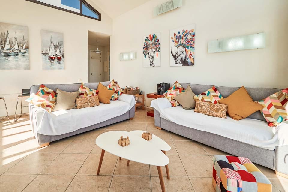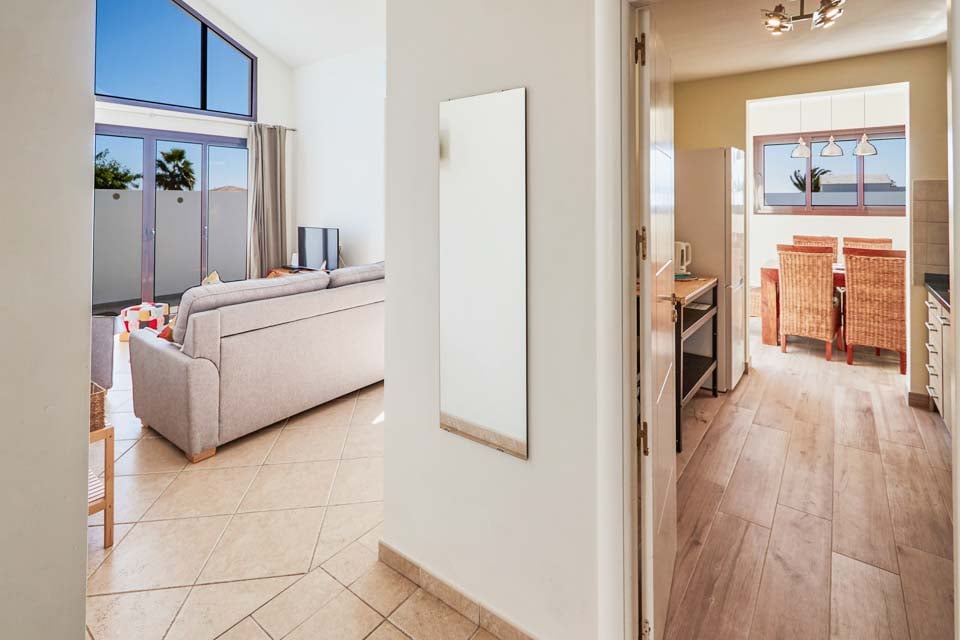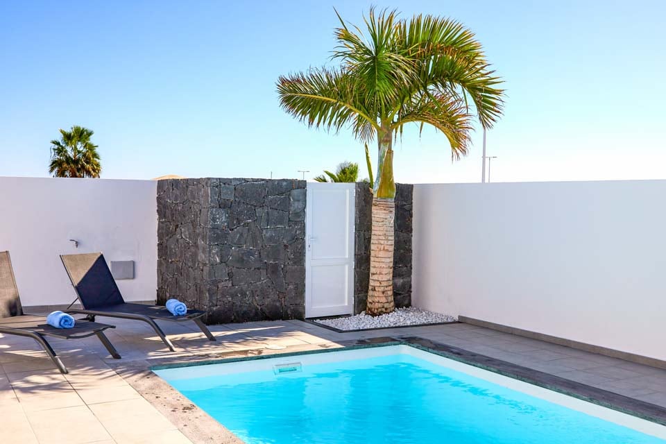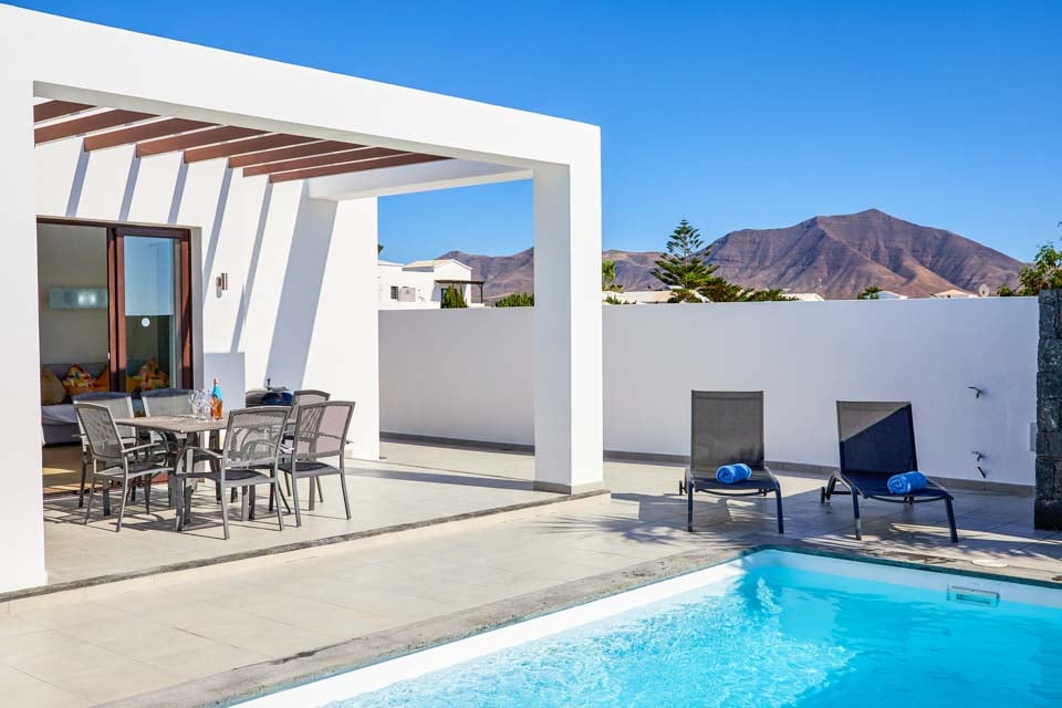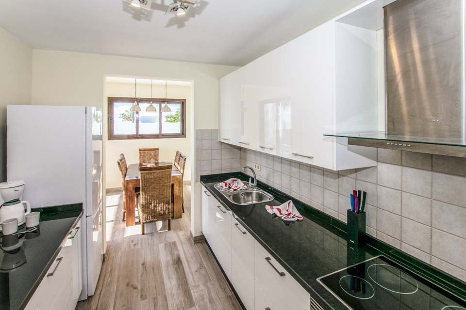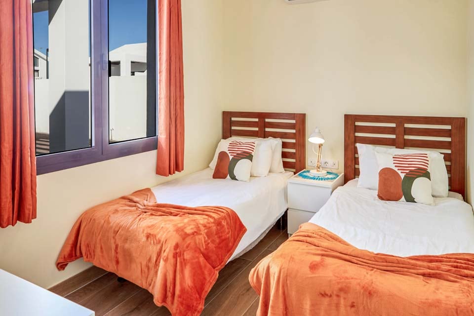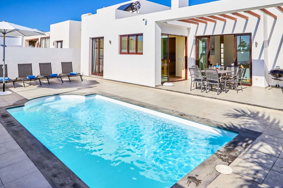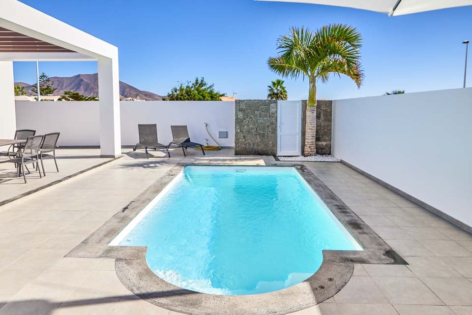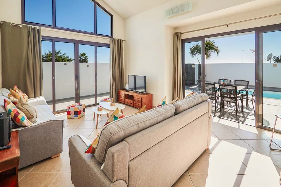 Inuti erbjuder Villa Buganvilla fyra rymliga sovrum, alla minimalistiska i stil med sval luftkonditionering och beige golvplattor. Det stora sovrummet har ett eget badrum och altandörrar som leder till poolterrassen. Det bekväma vardagsrummet har högt i tak och altandörrar från golv till tak, vilket släpper in mycket naturligt ljus i rummet. Den har också en smart-TV för mysiga filmkvällar med familjen. Alternativt, för utekvällar, ligger Playa Blancas centrum en kort 25 minuters promenad bort, där du hittar en mängd barer, kaféer och restauranger som serverar läckra tapasmenyer, nybryggda cocktails och lokala ölsorter.