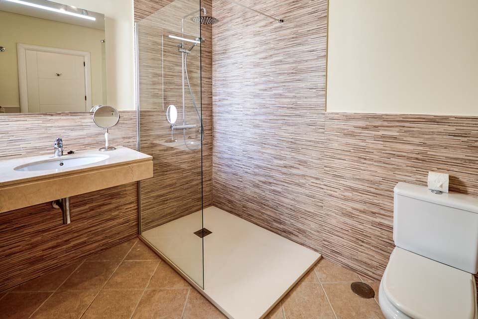 För att komma till villan finns en stig som är 272 cm bred tillsammans med ett trappsteg. Ytterdörren har en bredd på 94 cm, medan dörren till terrassen är 144 cm bred. Terrassen är öppen planlösning, plan och kaklad, medan det finns ett mycket litet trappsteg ner från pergolaområdet till poolkanten. Själva poolen har trappåtkomst. Detta är en fastighet på bottenvåningen. Dörren till det stora sovrummet är 70 cm bred, medan dörren till det gemensamma badrummet också är 70 cm bred. Dörren in till kök/matplats är 70 cm bred och dörren in till vardagsrummet är också 70 cm bred. *Observera att även om vi har gjort allt för att säkerställa att informationen som lämnas är korrekt, kan fel uppstå och om du behöver mer specifik information om villan, tveka inte att kontakta oss.