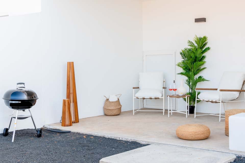 Täckt terrass, Matplats utomhus, Matmöjligheter utomhus, Matplats, Grill, Bärbar grill, Trädgårdsmöbler, Solstolar, Parasoll
