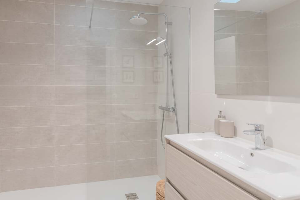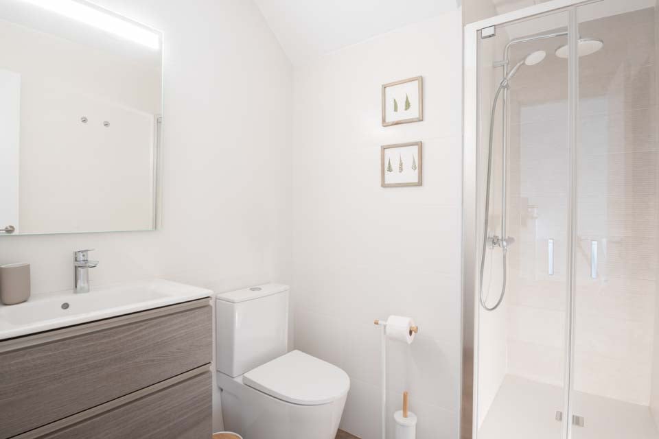 Njut av det fullt utrustade köket och det separata tvättstugan, perfekt för en semester med självhushåll. Utomhus kan du koppla av på den privata takterrassen med en rymlig dagbädd, som nås via en spiraltrappa från sovrummets balkong. Terrassen nedanför har solstolar och en bärbar grill – perfekt för att njuta av solen eller en kväll utomhus under stjärnorna.