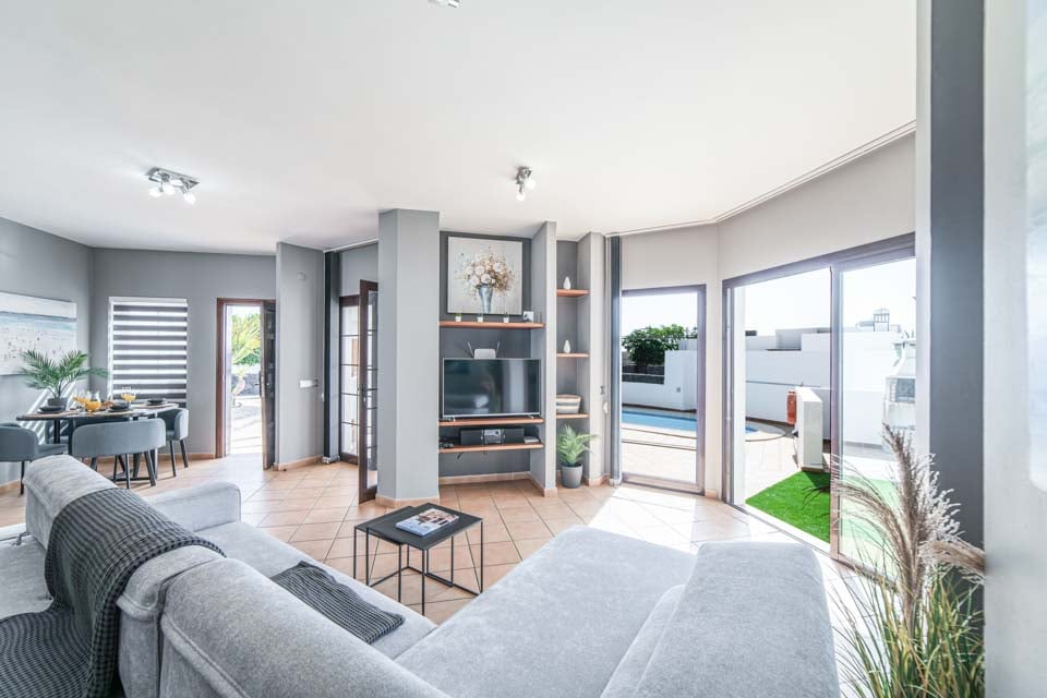 Välkommen till din soliga Lanzarote-semester! Inbäddat i hjärtat av Playa Blanca erbjuder denna vackert inredda villa med 2 sovrum och 2 badrum den perfekta blandningen av avkoppling och bekvämlighet – allt inom gångavstånd från butiker, restauranger och stränder, så det finns inget behov av bil.