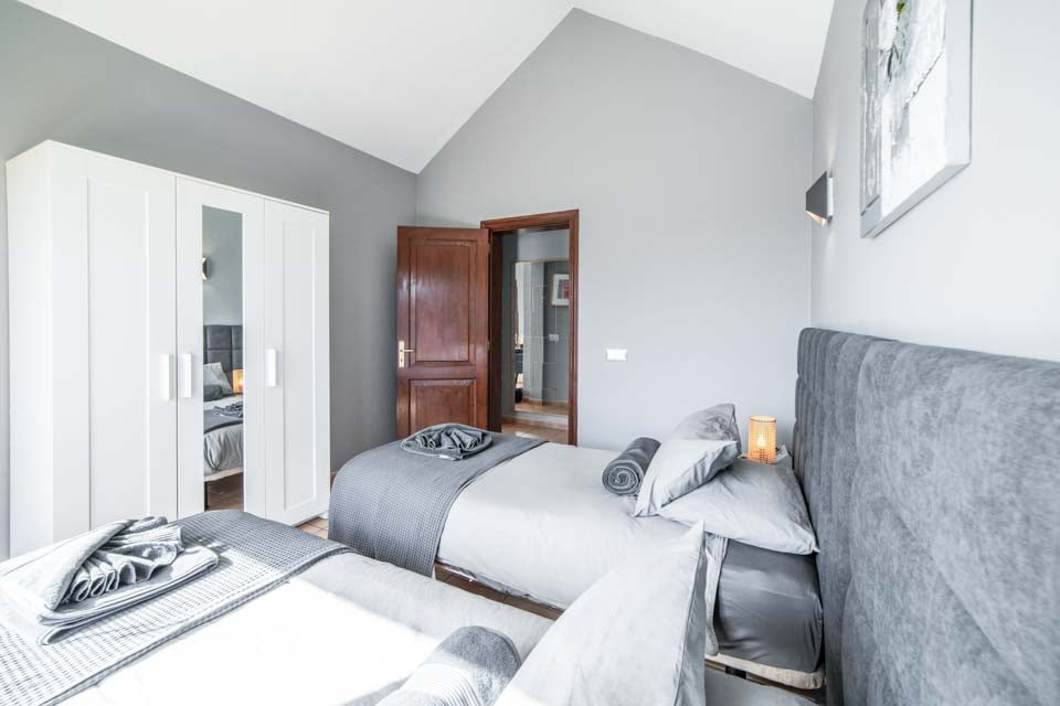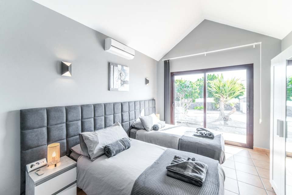 Enkelsängar, luftkonditionering, dörrar till terrass