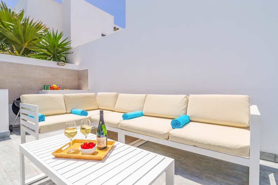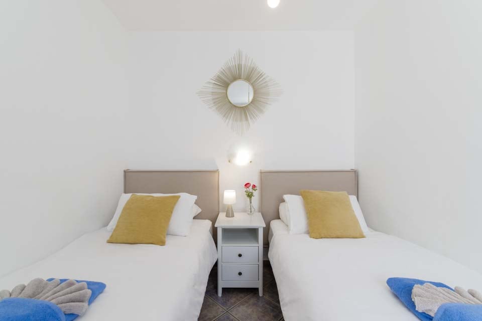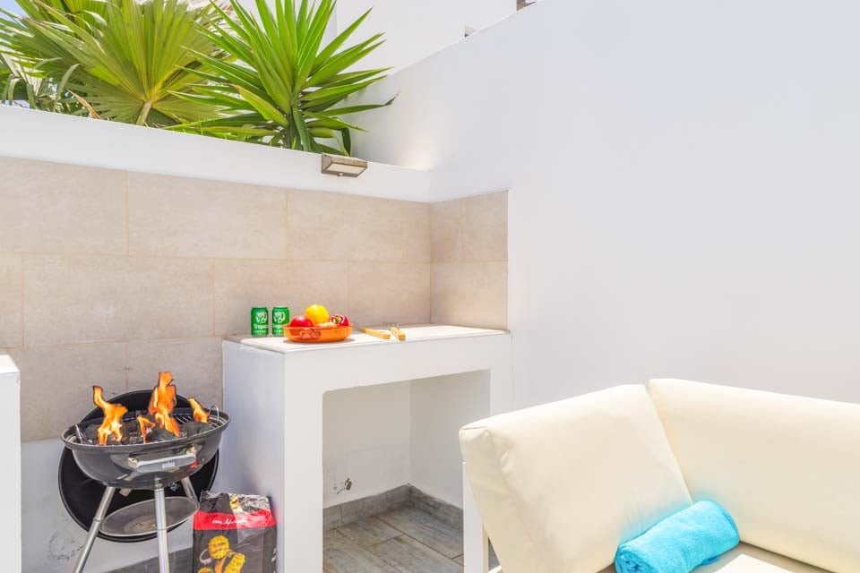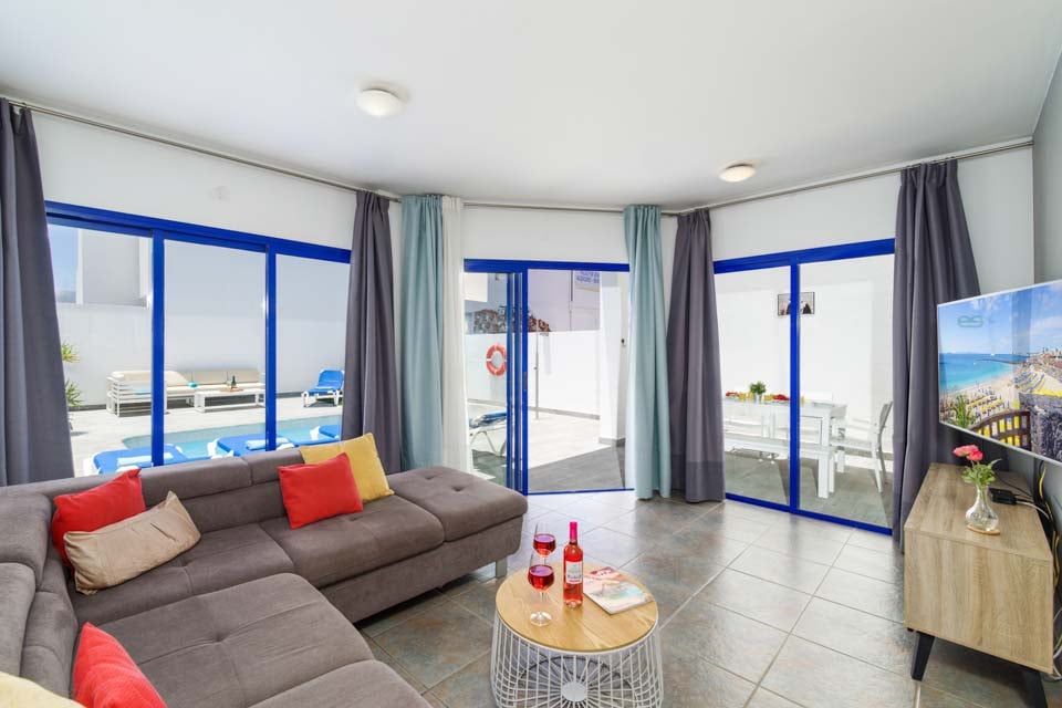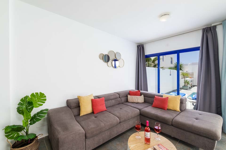Alternativt kan kvällarna tillbringas i villan, då det finns ett matbord med sex platser och en grillplats för matlagning utomhus. En trädgårdssoffa erbjuder en mysig plats för lite middagsläsning, medan du njuter av solskenet med stil med ett glas lokalt vin i handen. Inuti är villan hemtrevlig, med färgklickar överallt, rymliga sovrum och gratis poolhanddukar under hela din vistelse. Fullt utrustad med diskmaskin, mikrovågsugn och tvättmaskin, hittar du allt du behöver för en semester med självhushåll i solen.