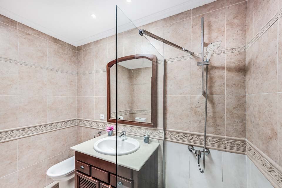 För att komma till villan finns en 90 cm lång stig med två trappsteg. Ytterdörren har en bredd på 166 cm. Utsidan är en öppen, kaklad terrass som är plan. Själva poolen har åtkomst via fyra trappsteg. De dubbla altandörrarna är huvudentrén till villan med ett litet trappsteg som mäter cirka 5 cm högt. Inne i villan är den bredaste sovrumsdörren på bottenvåningen 70 cm bred och den bredaste badrumsdörren på bottenvåningen är också 70 cm bred. Detta är en fastighet på bottenvåningen. *Observera att även om vi har gjort allt för att säkerställa att informationen som lämnas är korrekt, kan fel uppstå och om du behöver mer specifik information om villan, tveka inte att kontakta oss.