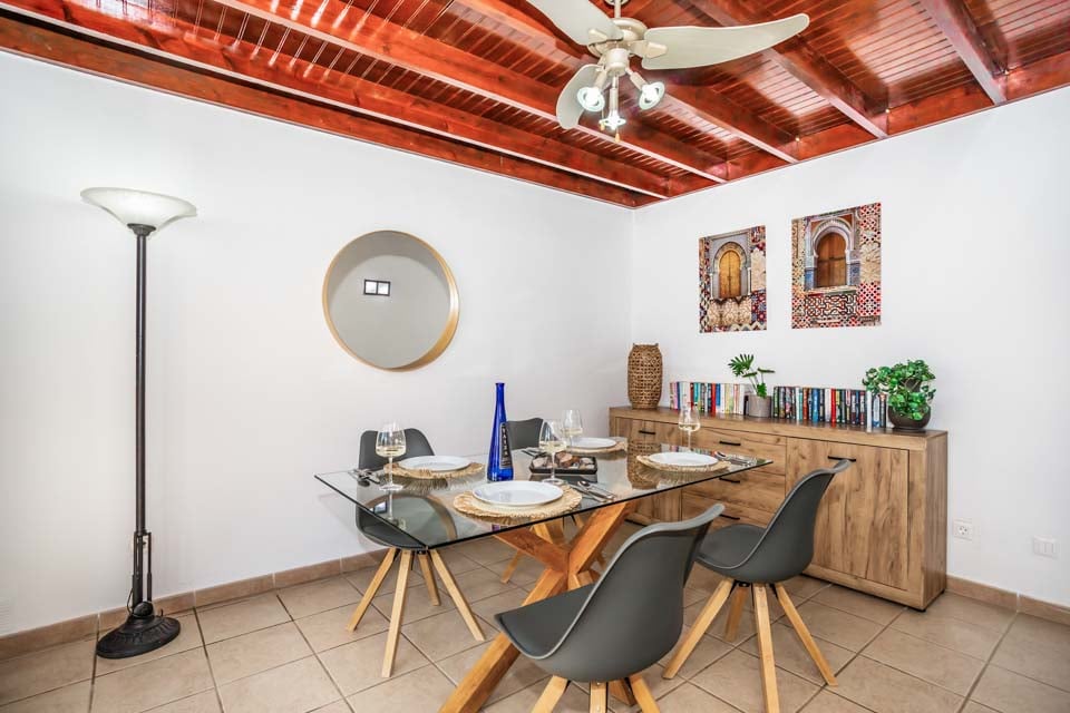 Villa Emilia handlar om sin intima utomhusmiljö, med en avskild terrass med terrakottakaklakel helt för dig själv. Med 300 soldagar om året över Kanarieöarna kan du koppla av på solstolarna och njuta av det oändliga solskenet. För den ultimata lata eftermiddagen, ta ett plask i den glittrande poolen för att undkomma värmen. Följ de dubbla franska dörrarna till mysiga interiörer – med modern inredning, trätak och inbjudande färgtoner som fyller villan med en känsla av värme. De två dubbelrummen, det rymliga vardagsrummet, matplatsen och det moderna köket är fördelade över en våning och bildar en intim villa. När kvällen sipprar in kan vi inte tänka oss en bättre plats att titta på solnedgången än med middag och dryck i matsalen utomhus.