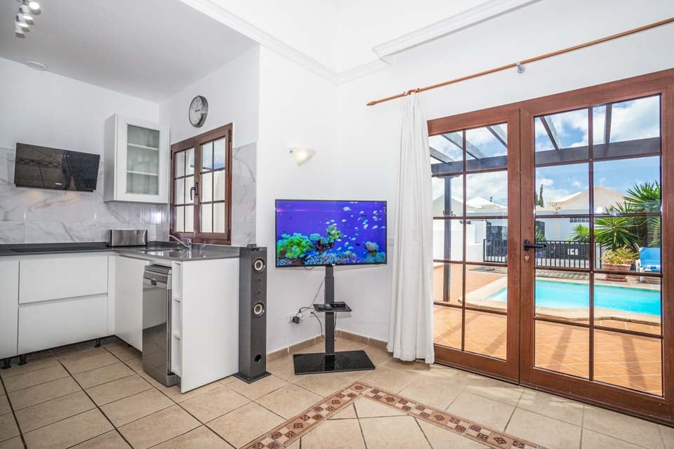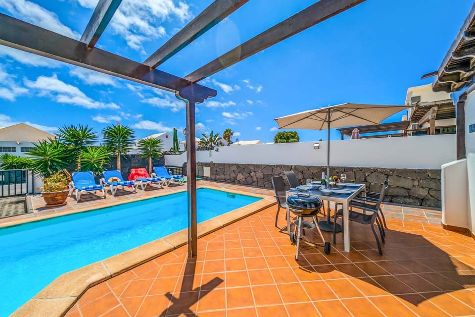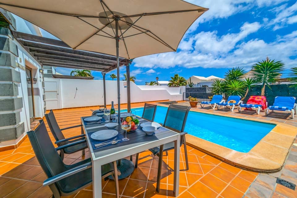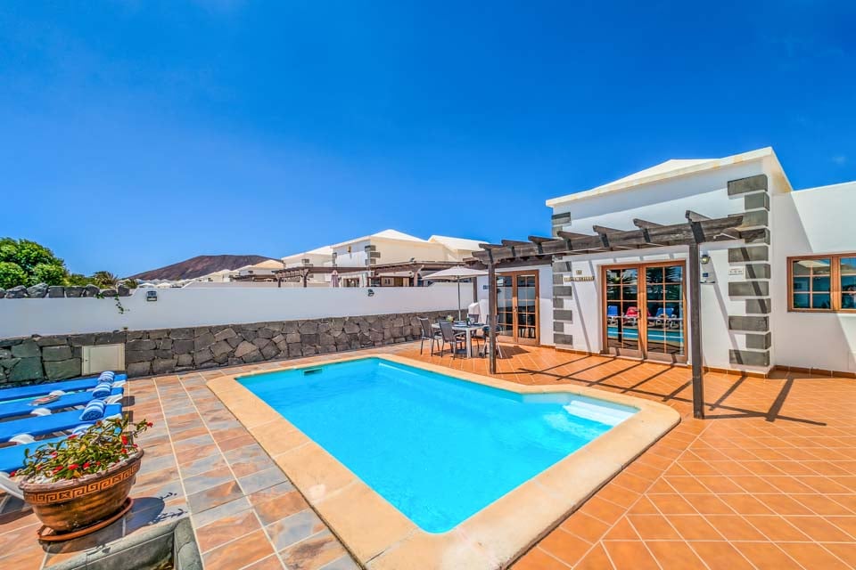 För en smak av Lanzarote är Villa Emilia den perfekta basen för en liten familj eller ett par som längtar efter en mysig tillflyktsort på denna soldränkta ö. Inbäddat i det pittoreska området Parque del Rey på öns södra udde, är denna charmiga villa en idyllisk vistelse borta från liv och rörelse. För att få en glimt av händelsernas centrum ligger Playa Blanca livliga centrum bara en femton minuters promenad bort, där du kommer att bli bortskämd med valmöjligheter när det gäller bekvämligheter. Berika dina smaklökar på en förstklassig restaurang, leta souvenirer i butiker eller smaka på traditionella drinkar i en bar.