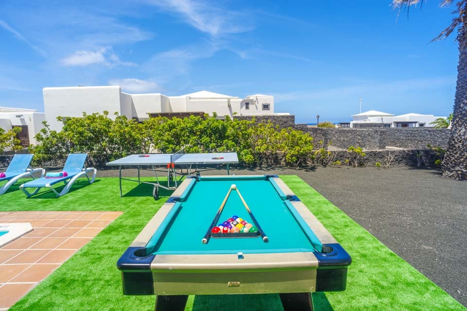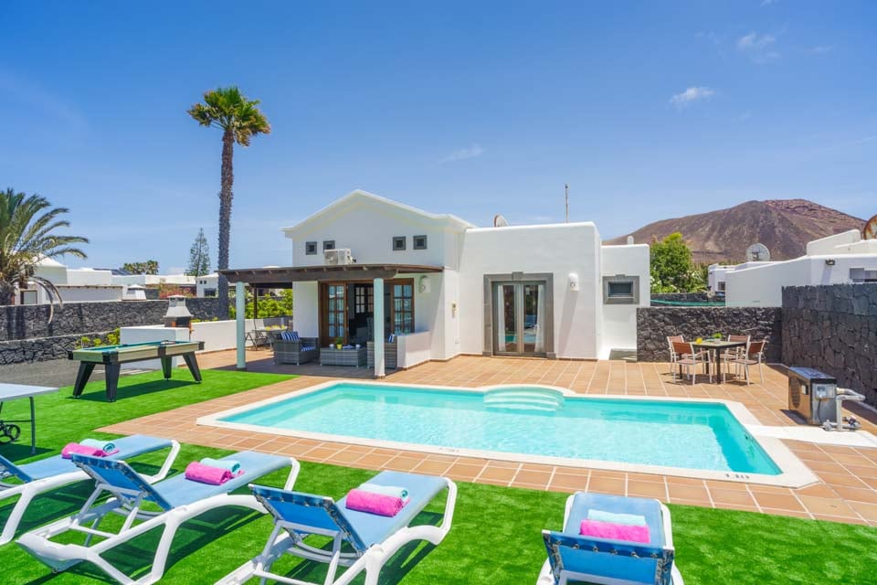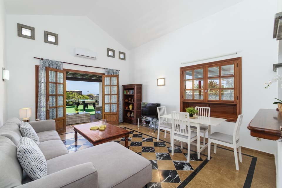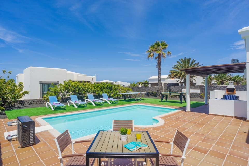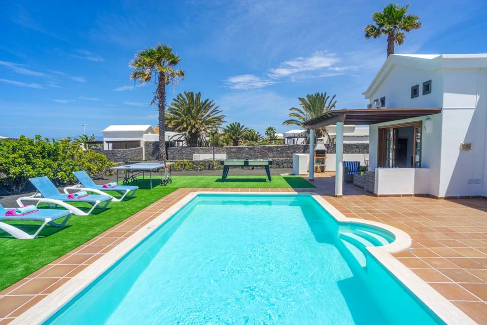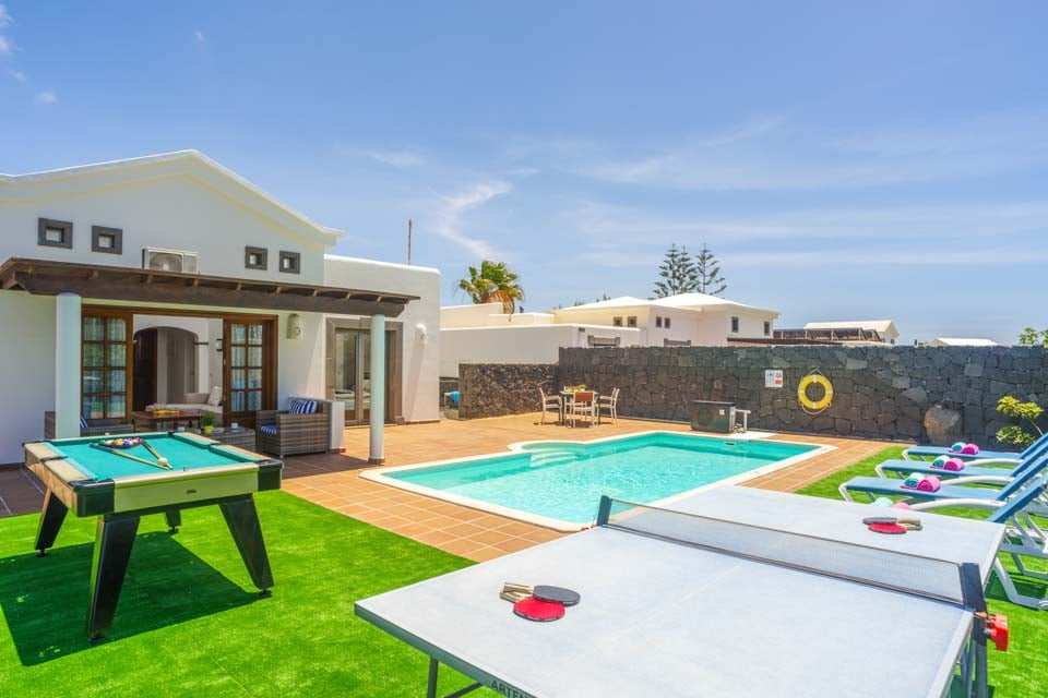 Villa Faroles är perfekt för par och små familjer som söker ett lugnt läge nära den populära kuststaden Playa Blanca. Denna typiska kanariska vitkalkade fastighet är belägen i ett plan och har två sovrum. Gästerna välkomnas till ett vardagsrum och matplats i öppen planlösning med utsikt över ett fullt utrustat kök. Rummet strömmar in med naturligt ljus tack vare vardagsrummets altandörrar som leder till en täckt terrass och trädgård där gästerna kan njuta av det varma solskenet. Ett bordtennisbord väntar för en rolig tävling medan föräldrarna grillar en festmåltid, och naturligtvis finns det en inbjudande pool att plaska runt i eller lata sig runt hela eftermiddagen!