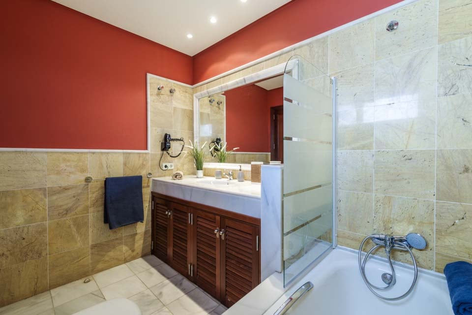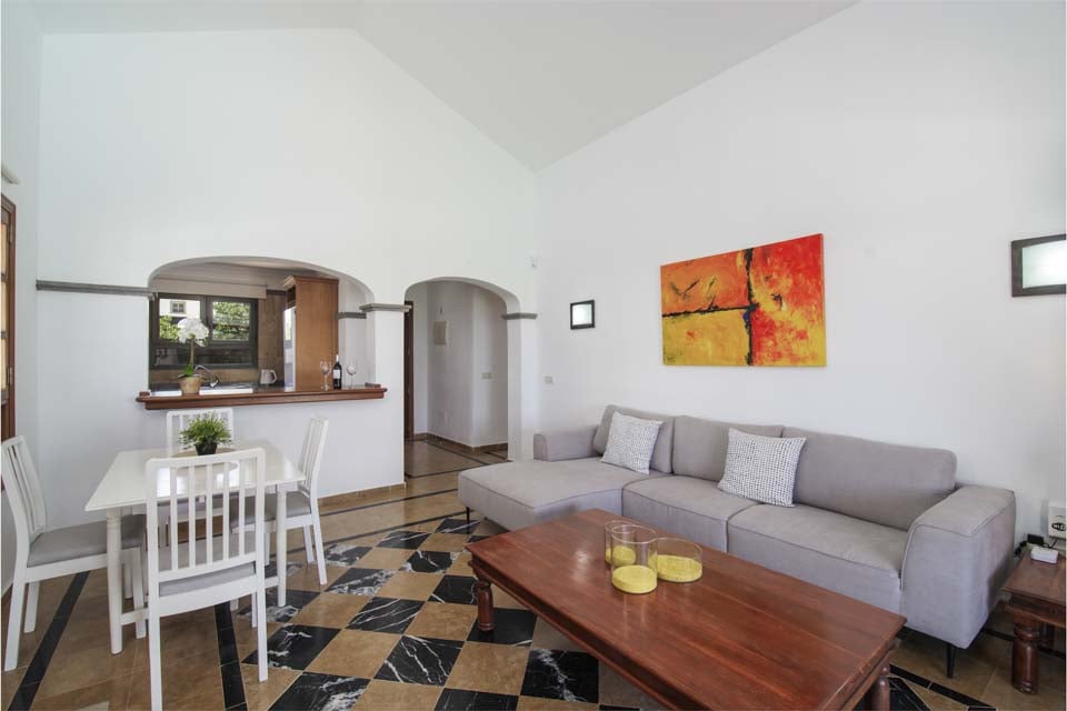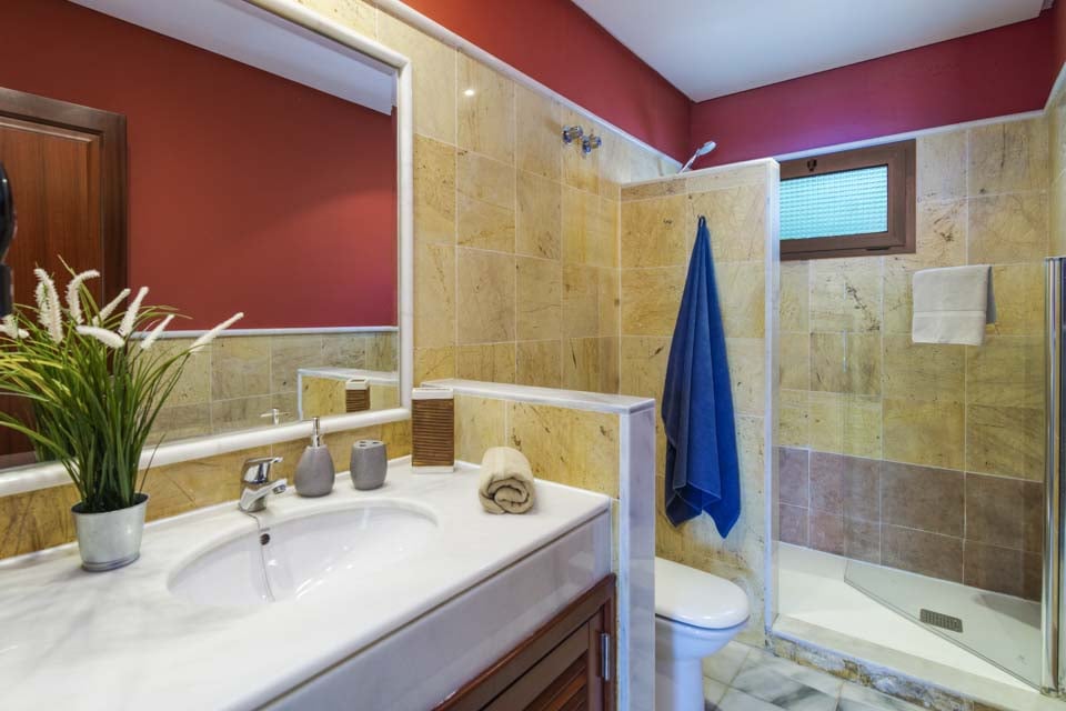 För att komma till villan finns en stig som är 93 cm bred och har 1 trappsteg. Ytterdörren har en bredd på 80 cm. Dörren som leder till poolterrassen är 140 cm bred. Terrassen och poolområdet har öppen planlösning. Terrassen runt poolen är plan och kaklad. Själva poolen har trappsteg, medan kakelplattorna runt poolen har en kant på 3 cm. Detta är en fastighet på bottenvåningen. Det stora sovrummet har en dörrbredd på 75 cm, medan både det en-suite-badrummet och familjebadrummet har en dörrbredd på 67 cm. Dörren in till kök/matplats är 78 cm bred, medan dörren till vardagsrummet är 140 cm bred. *Observera att även om vi har gjort allt för att säkerställa att informationen som lämnas är korrekt, kan fel uppstå och om du behöver mer specifik information om villan, tveka inte att kontakta oss.