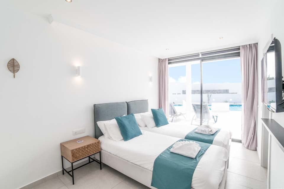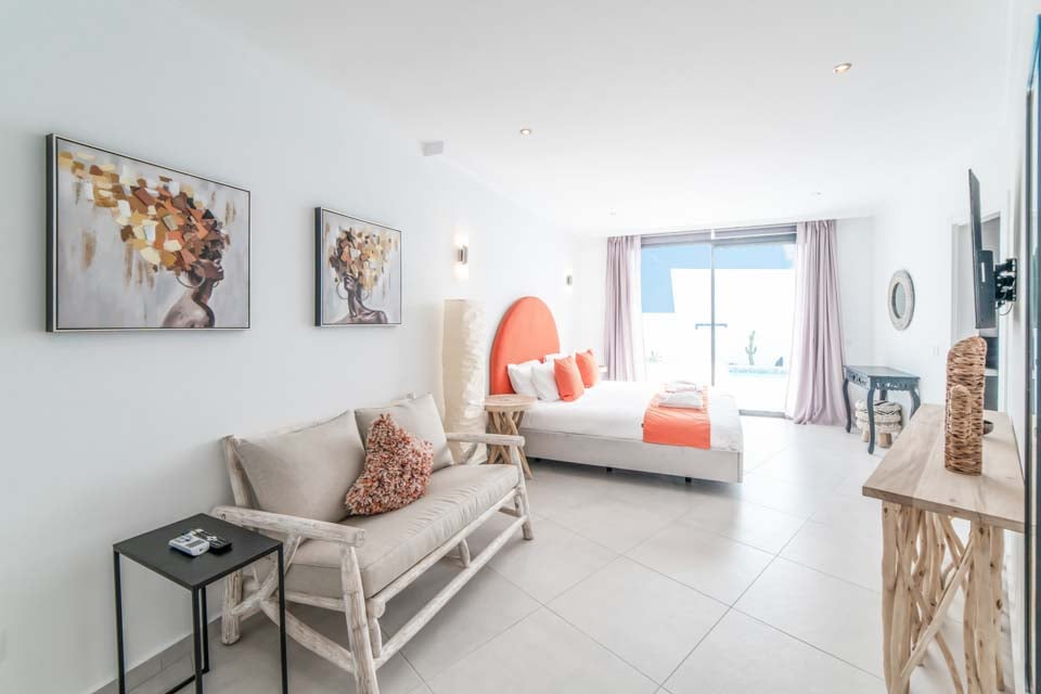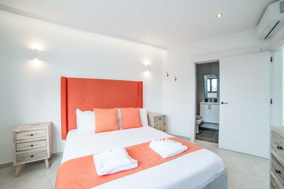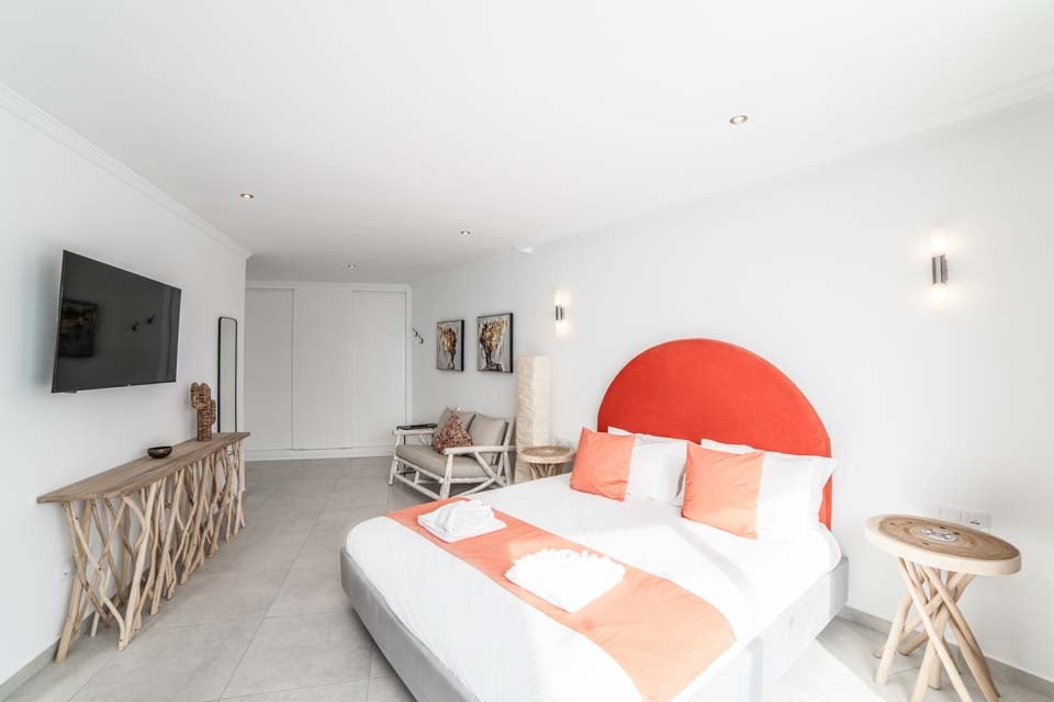 King size-säng, super king size-säng, smart-TV, luftkonditionering, dörrar till terrass