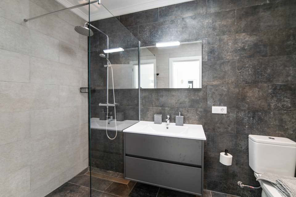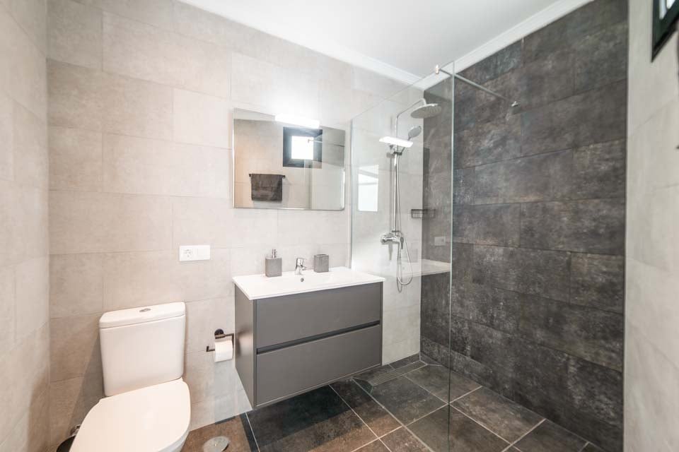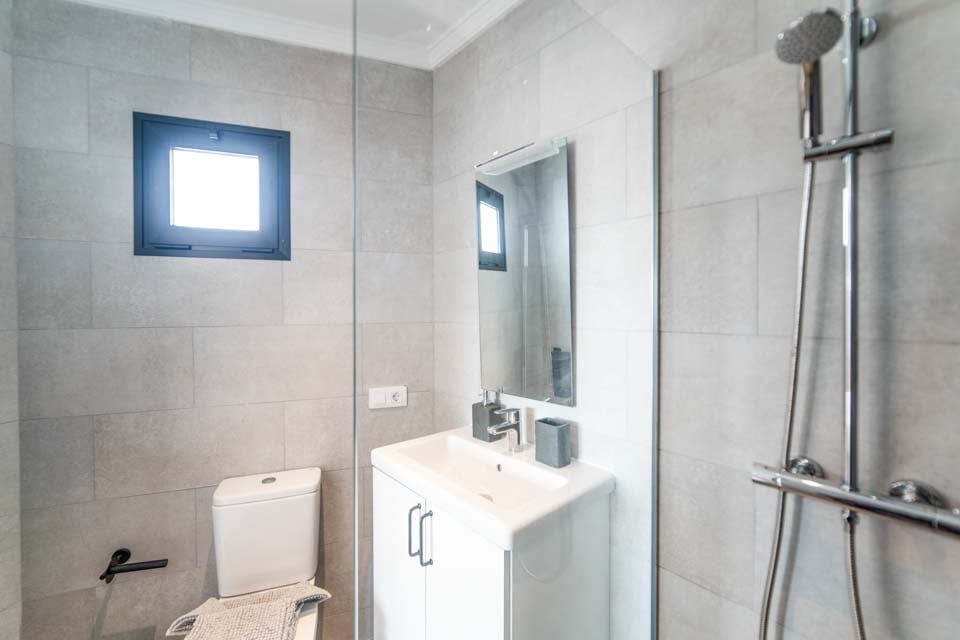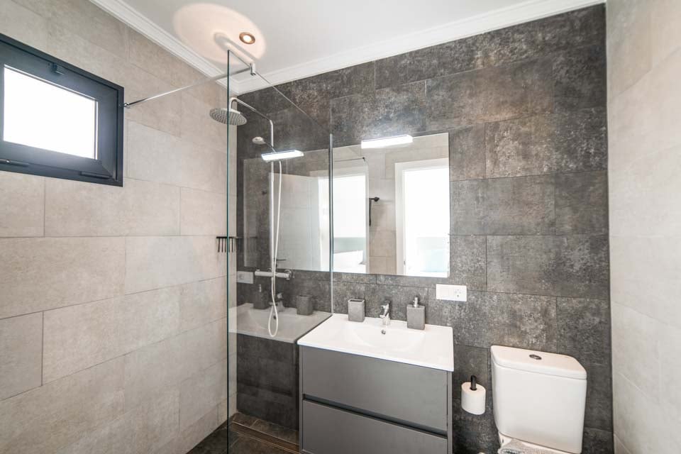 För att komma till villan finns en 110 cm bred stig tillsammans med 7 trappsteg. Ytterdörren har en bredd på 90 cm, medan dörren till terrassen också är 90 cm bred. Stigen till poolkanten är 110 cm bred. Terrassen är helt i ett plan, öppen planlösning och kaklad. Det finns en liten kant över altandörrkarmarna. Själva poolen har trappåtkomst. Alla sovrum har en dörrbredd på 70 cm, medan alla badrum har en dörrbredd på 70 cm. Dörren in till kök/matplats är 120 cm bred och dörren in till vardagsrummet är 130 cm bred. Det finns ett gym och en lounge på nedervåningen, som nås via 15 interna trappsteg. *Observera att även om vi har gjort allt för att säkerställa att informationen som lämnas är korrekt, kan fel uppstå och om du behöver mer specifik information om villan, tveka inte att kontakta oss.