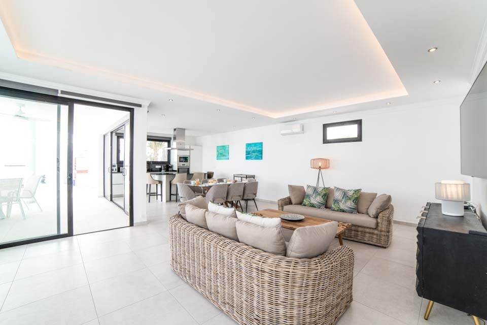 Denna fantastiska villa i Playa Blanca erbjuder en oumbärlig blandning av moderna bekvämligheter och oslagbar bekvämlighet, belägen inom gångavstånd från den trendiga yachtmarinan, samt en mängd restauranger, butiker och tapasbarer. Med fem rymliga sovrum rymmer denna moderna villa bekvämt större bokningar för dem som söker en avkopplande semester.