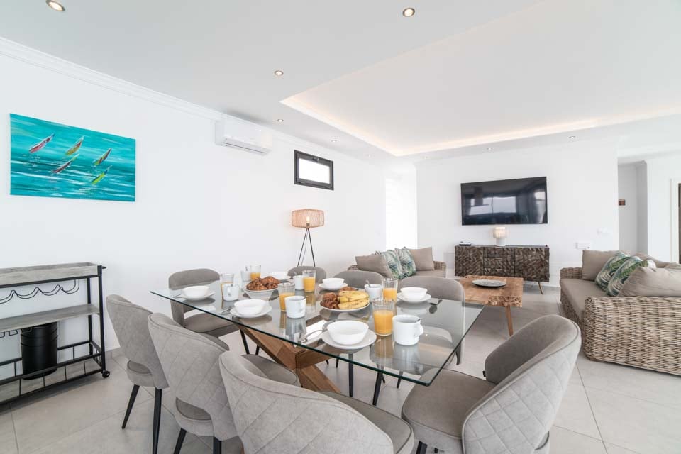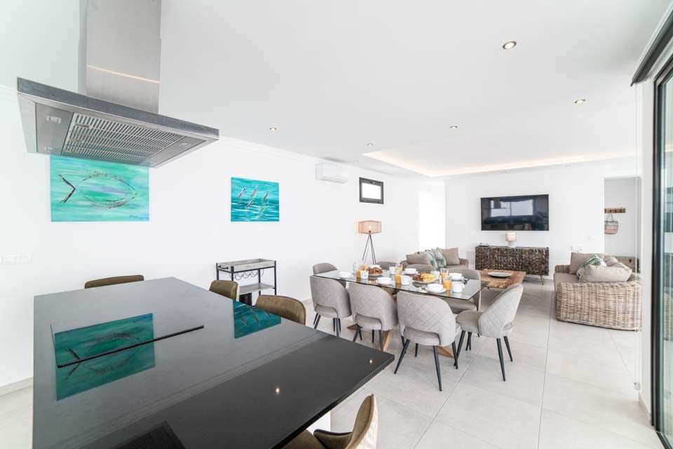 Villan är utrustad med smarta TV-apparater i flera rum för din underhållning, medan den moderna designen förstärker känslan av rymd och ljus i hela fastigheten. Utomhus hittar du en tegelgrill som är perfekt för att äta utomhus och njuta av varma kvällar. Oavsett om du vill koppla av vid poolen, njuta av närliggande sevärdheter eller varva ner med familj och vänner i en mysig miljö, erbjuder denna villa allt du behöver för en oförglömlig vistelse.