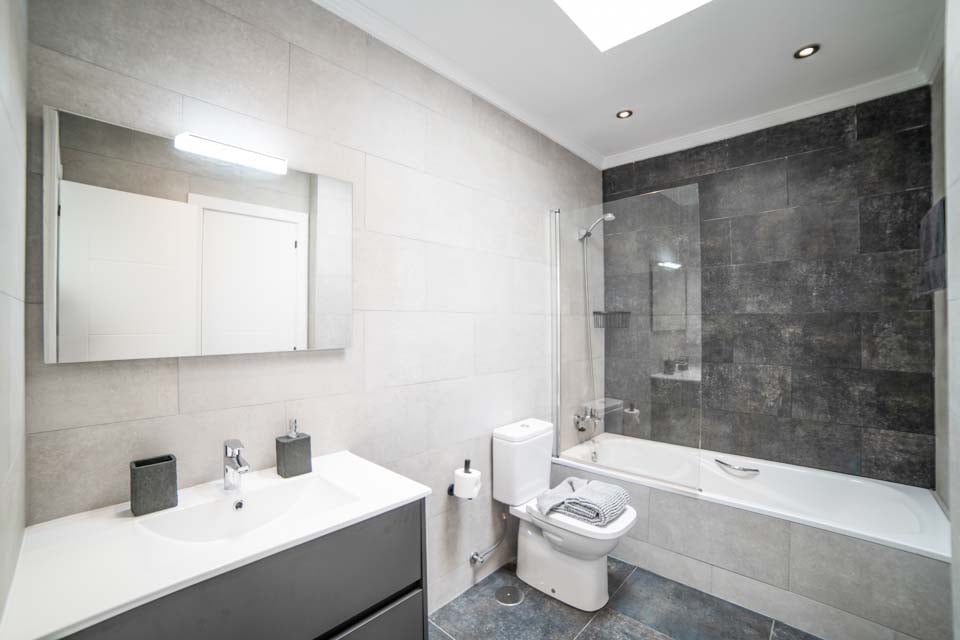 Anslutande dörrar, Badkar med dusch, Toalett, Handfat