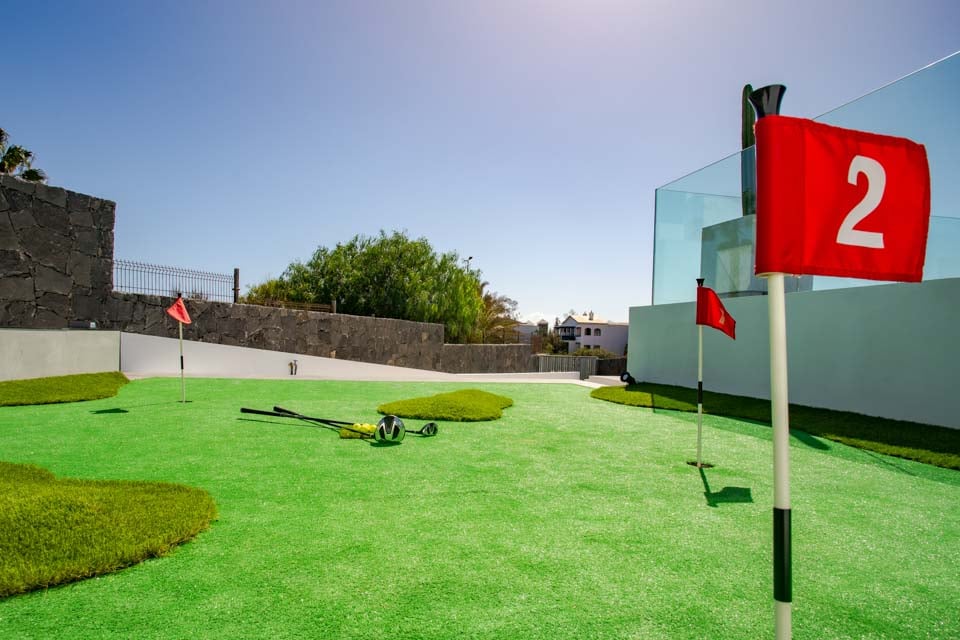 Villa Infinity är designad med stora balkonger och terrasser och imponerar verkligen när det gäller utomhusliv. Frukosten har aldrig sett så god ut på den stora övre terrassen, där du kan smutta på en espresso över 360-graderspanoramautsikt över det hypnotiska havslandskapet. Sjunk ner i den bubblande bubbelpoolen eller simma några längder i den stora, glittrande poolen. Fodrad med mjuka dubbla solstolar och dagbäddar, perfekt placerad vid poolen för övergången från simning till solbad. Det blir inte bättre än så här att äta utomhus, där du kan njuta av ett glas vin och äta middag medan du tittar på solnedgången vid horisonten. Gå till den nedre terrassen för att öva din sving på puttinggreenerna.
