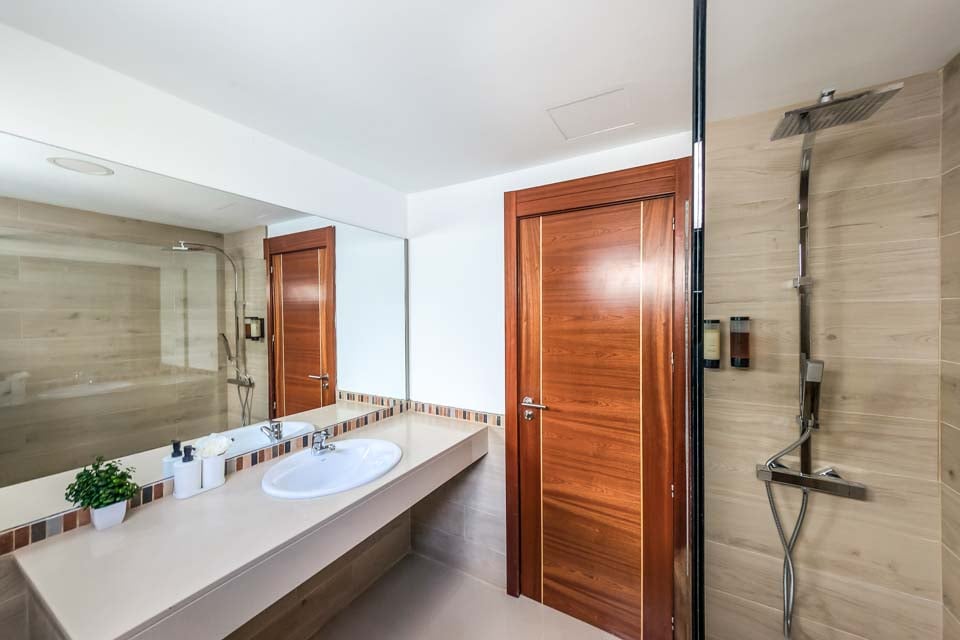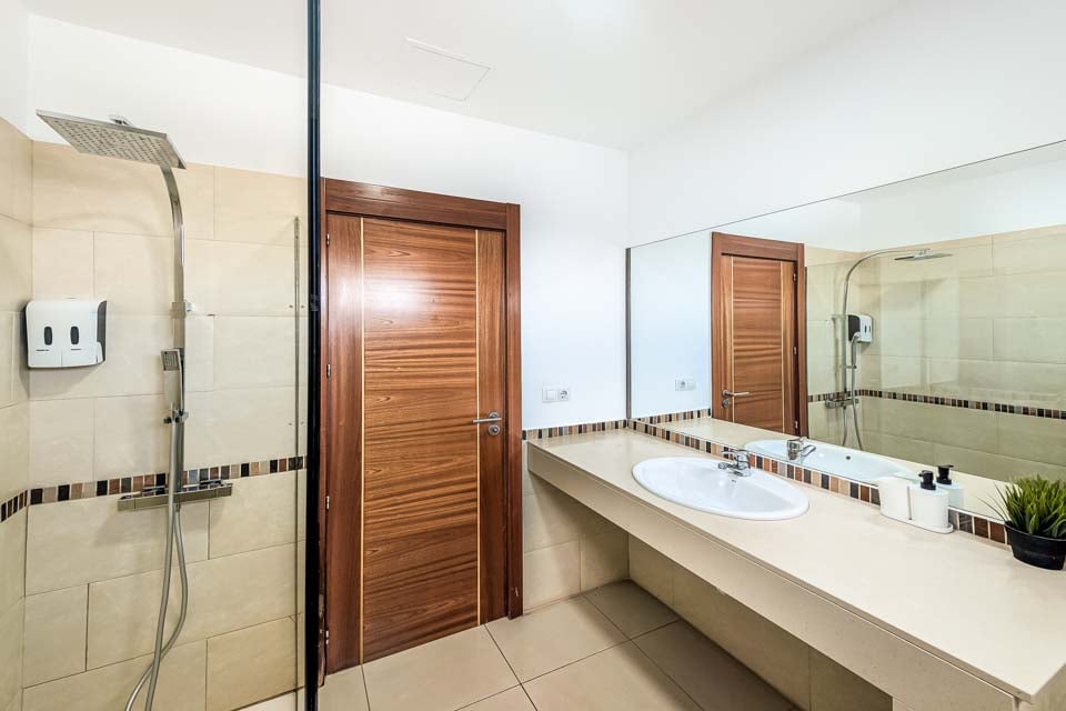 För att komma till villan finns en stig som är 120 cm bred. Ytterdörren har en bredd på 83 cm, medan dörren till terrassen är 180 cm bred. Terrassen är öppen planlösning, plan och kaklad. Själva poolen har trappåtkomst. Alla sovrum har en dörrbredd på 70 cm, medan alla badrum har en dörrbredd på 70 cm. Dörren in till kök/matplats är 70 cm bred och dörren in till vardagsrummet är också 70 cm bred. *Observera att även om vi har gjort allt för att säkerställa att informationen som lämnas är korrekt, kan fel uppstå och om du behöver mer specifik information om villan, tveka inte att kontakta oss.