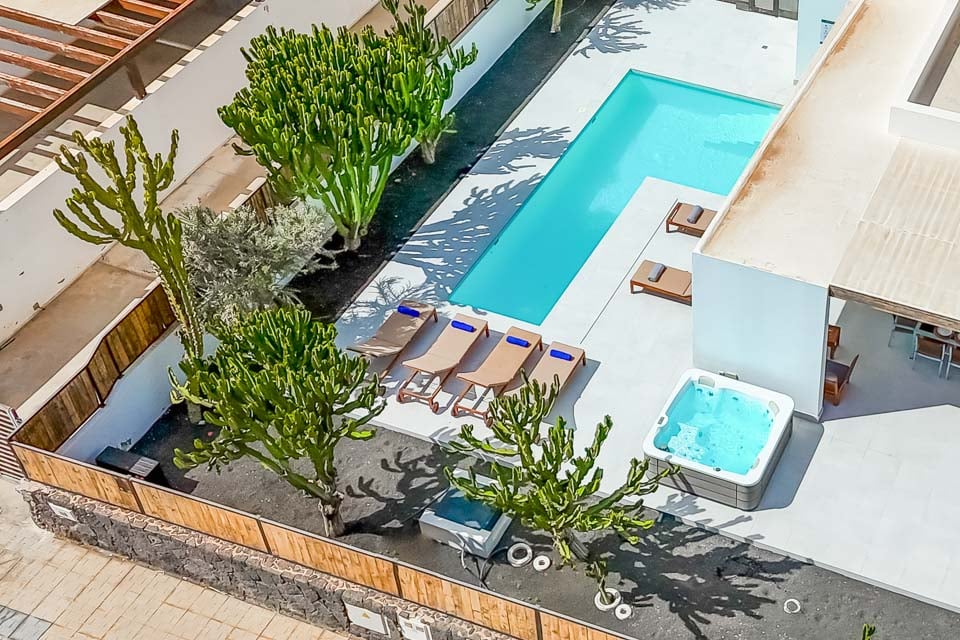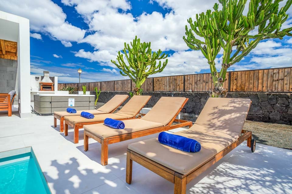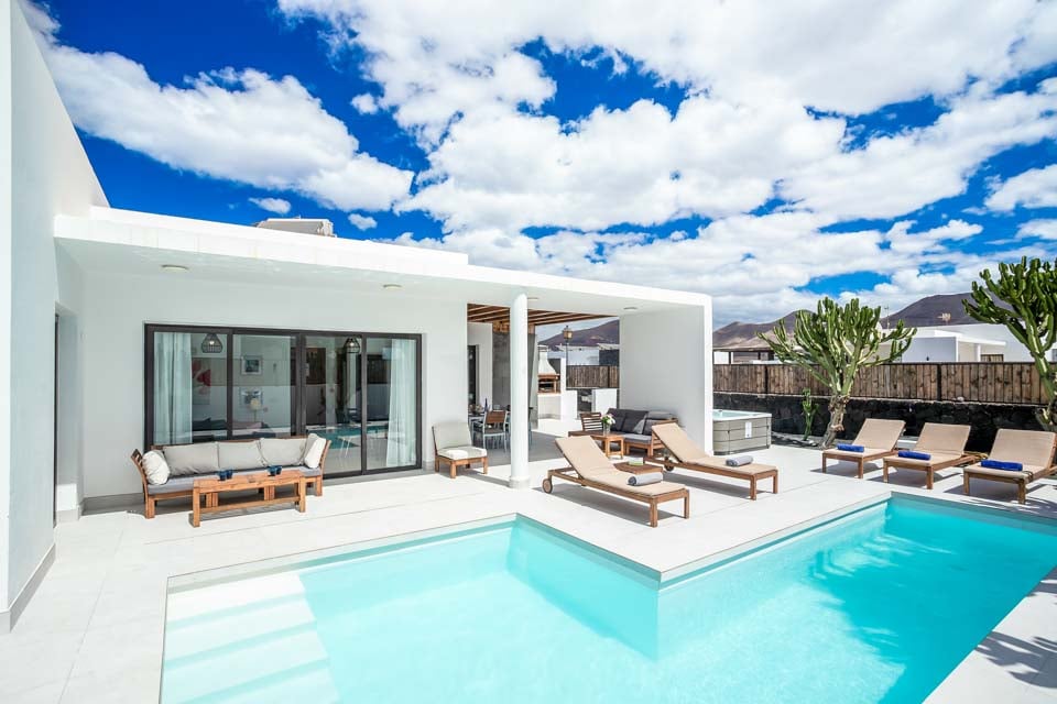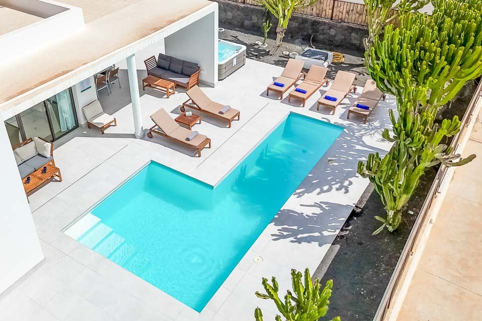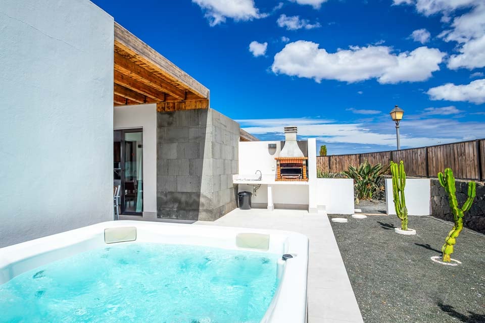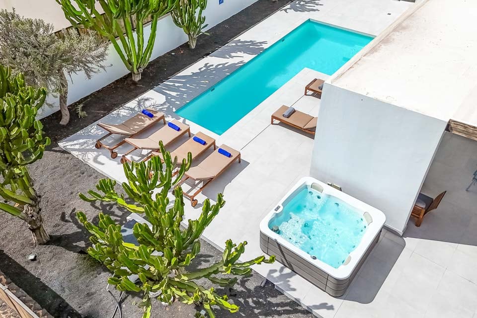 En fullständig motsats till det vulkaniska landskapet som Lanzarote är känt för, det svala och lugna vattnet i din privata pool väntar på dig. Under den strålande solen som skiner året runt, vill du aldrig lämna din villa när du har en oas precis utanför dörren. Hitta lite lugn och ro på sydkusten medan du har solglasögonen på och fötterna uppe på solstolarna vid poolen. Under den klara och ljusblå himlen kommer dina vardagliga bekymmer helt enkelt att försvinna. Din privata bubbelpool är verkligen pricken över i:et och ger dig den bästa platsen att luta dig tillbaka och koppla av med en svalkande drink i handen under skymningstimmarna.