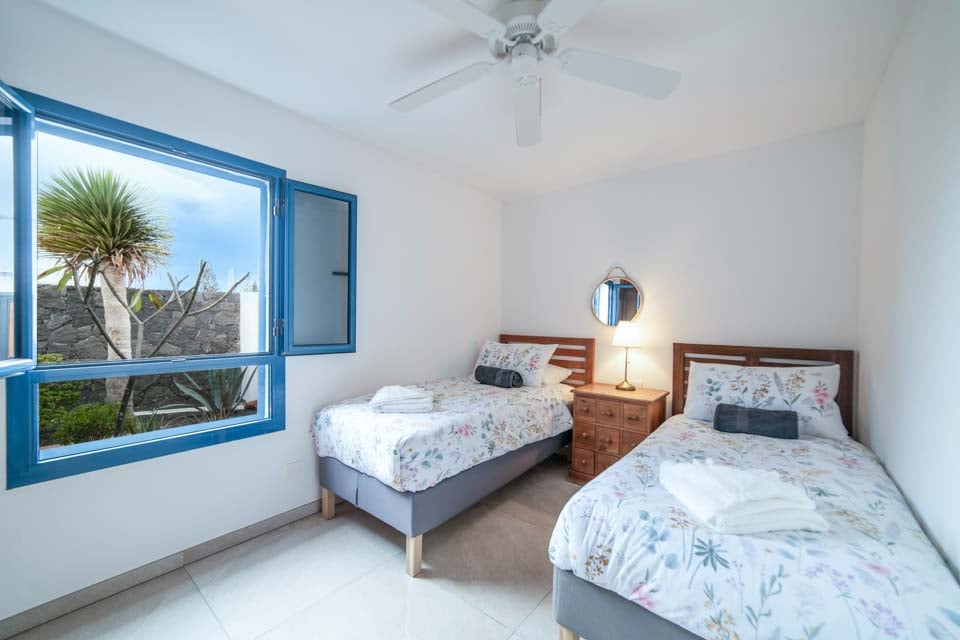 Belägen i det vackra området Playa Blanca, erbjuder denna eleganta villa den perfekta balansen mellan komfort och bekvämlighet, med semesterortens centrum bara en kort bilresa bort. Villan är idealisk för upp till fem gäster och har tre rymliga sovrum, inklusive ett sovrum med en super king size-säng och luftkonditionering, vilket garanterar en god natts sömn.