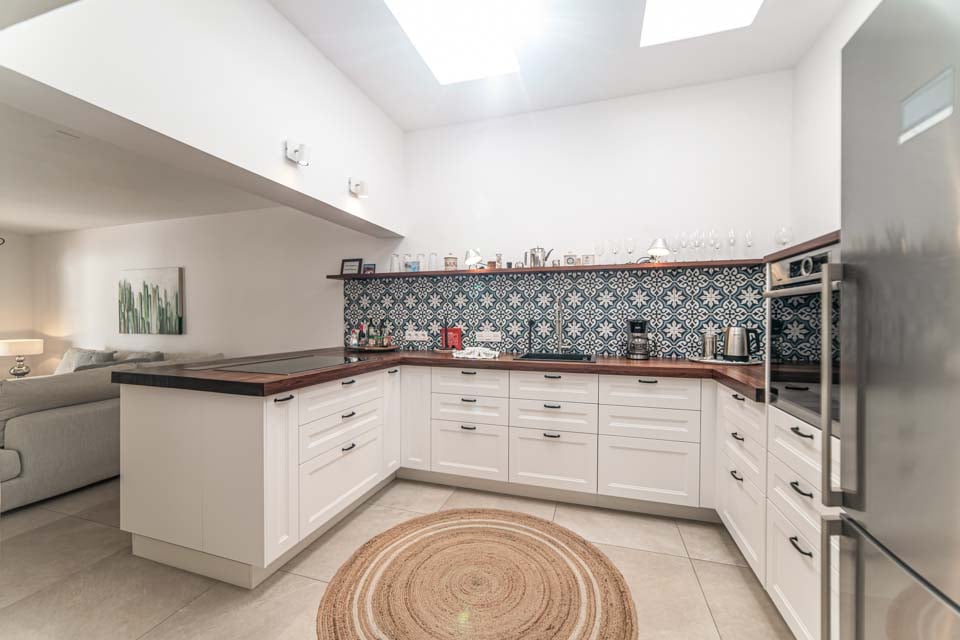 Den stora terrassen är en riktig höjdpunkt och erbjuder gott om utrymme att koppla av och njuta av solen. Den privata poolen, som är uppvärmd under vintermånaderna, erbjuder den perfekta platsen att svalka sig eller varva ner, medan det frodiga utomhusutrymmet skapar en avkopplande miljö för måltider och avkoppling utomhus.