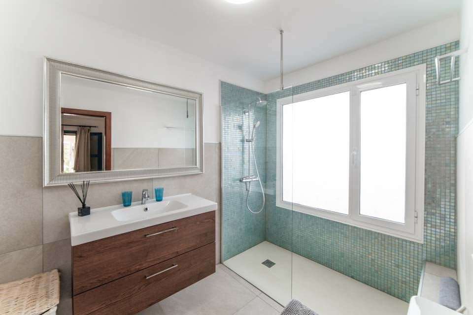 För att komma till villan finns en 90 cm bred stig tillsammans med ett trappsteg. Ytterdörren har en bredd på 90 cm, medan dörren till terrassen är 134 cm bred. Terrassen är öppen planlösning och kaklad med två trappsteg ner till poolkanten. Detta kan ses på bilderna av villan. Själva poolen har trappåtkomst. Detta är en fastighet på bottenvåningen. Dörren till det stora sovrummet är 75 cm bred, medan dörren till det delade duschrummet är 70 cm bred. Dörren in till kök/matplats är 90 cm bred och dörren in till vardagsrummet är också 90 cm bred. *Observera att även om vi har gjort allt för att säkerställa att informationen som lämnas är korrekt, kan fel uppstå och om du behöver mer specifik information om villan, tveka inte att kontakta oss.