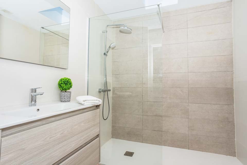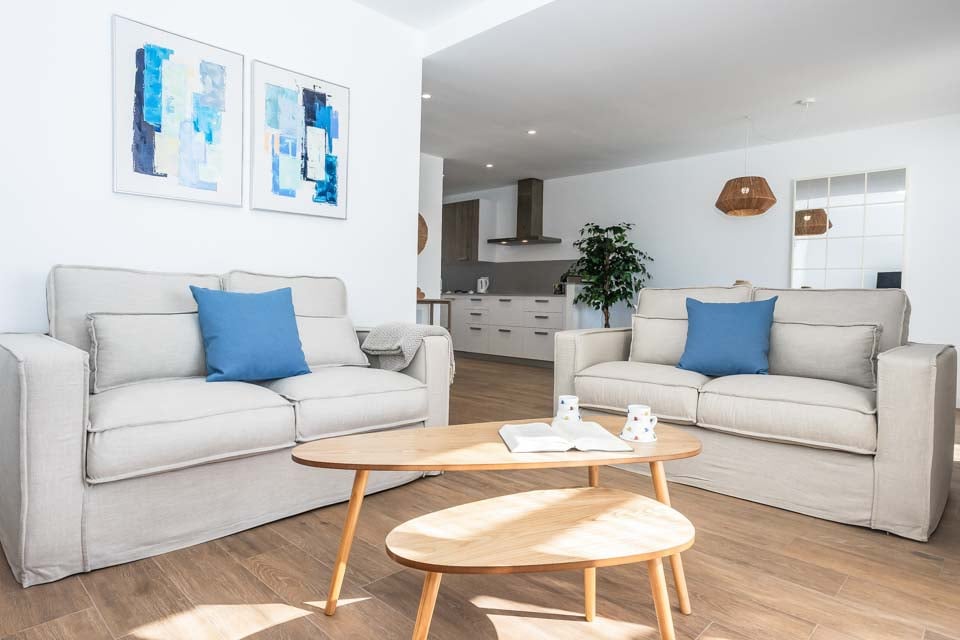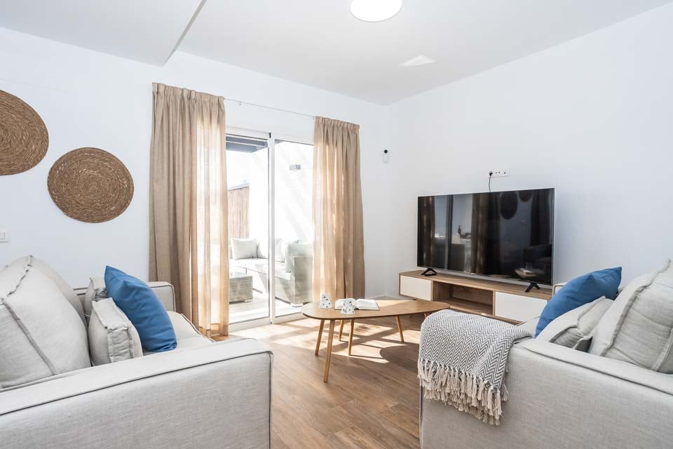 Fastigheten har tre bekväma sovrum och tre moderna duschrum, vilket gör den idealisk för upp till sex gäster. Det stora sovrummet öppnar upp mot en privat balkong som leder till en takterrass med havsutsikt i fjärran – en utmärkt plats att koppla av med ett morgonkaffe eller en kvällsdrink.
