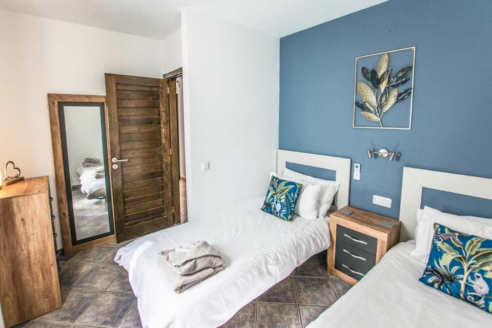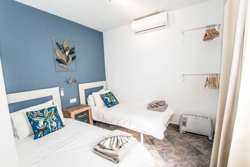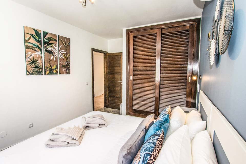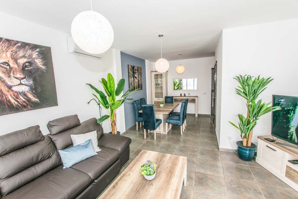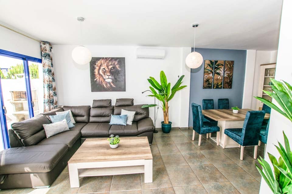 Inuti hittar du tre sovrum, alla inredda för att ge dig en hemtrevlig känsla, med färgklickar, mjuka sängkläder och gratis poolhanddukar. Med ett mysigt vardagsrum och ett fullt utrustat kök hittar du allt du kan behöva på din semester med självhushåll.
