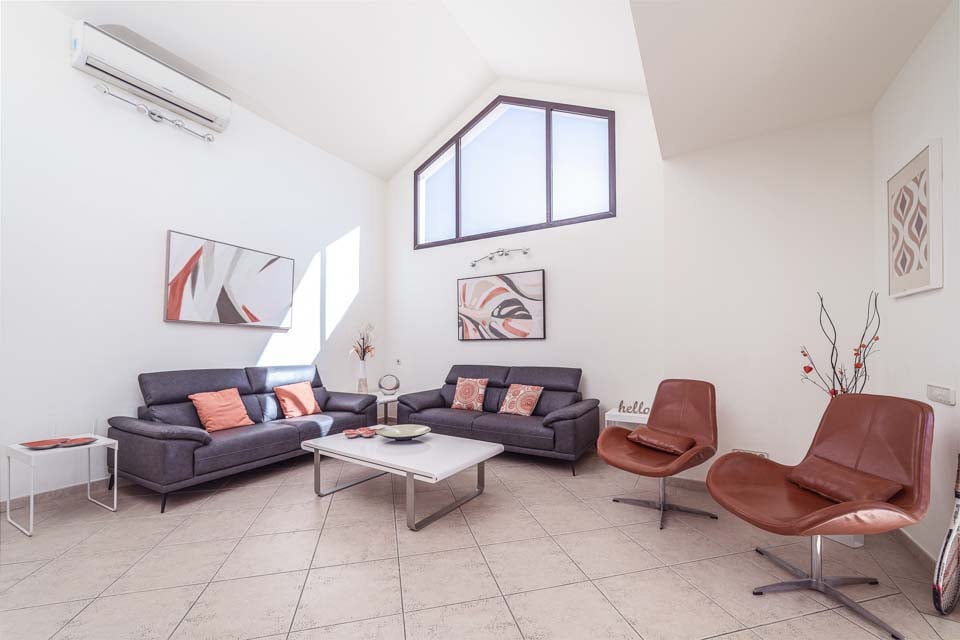 Bekväm sittgrupp, luftkonditionering, satellit-TV, satellit-TV med flera engelska kanaler, Bluetooth-högtalare, matplats, dörrar till terrass