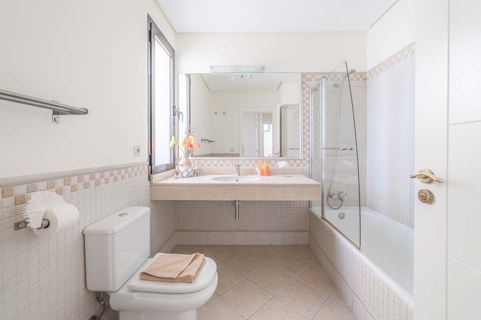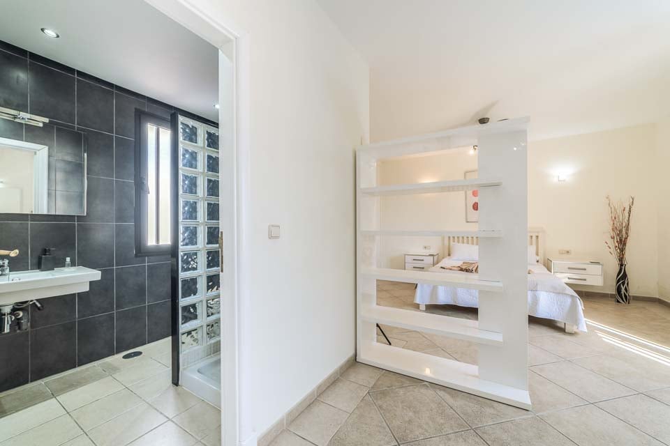 För att komma till villan finns en 160 cm bred stig tillsammans med ett trappsteg. Ytterdörren har en bredd på 89 cm, medan dörren till terrassen är 135 cm bred. Terrassen runt poolen är plan. Tillgång till poolen via altandörrarna består av ett litet trappsteg på 18 cm, tillsammans med en kant över dörrkarmen. Själva poolen har trappåtkomst. Det stora sovrummet på bottenvåningen har en dörrbredd på 70 cm, medan badrumsdörren också är 70 cm bred. Det finns 18 trappsteg till första våningen. Dörren in till kök/matplats är 130 cm bred och dörren in till vardagsrummet är också 180 cm bred. *Observera att även om vi har gjort allt för att säkerställa att informationen som lämnas är korrekt, kan fel uppstå och om du behöver mer specifik information om villan, tveka inte att kontakta oss.