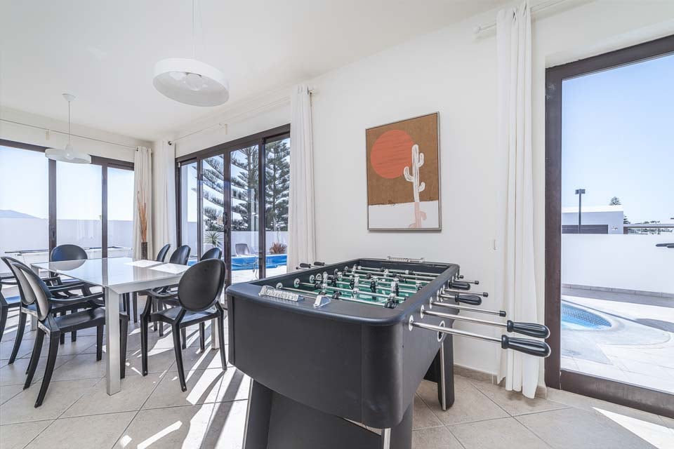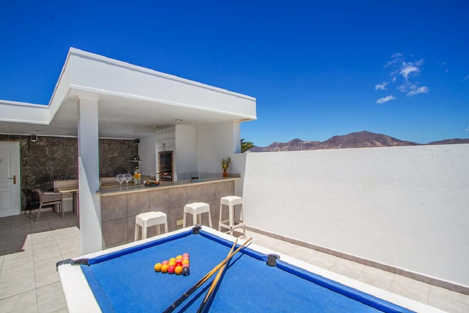 Säg Heja till den underbara Villa Muellen! Belägen i utkanten av Playa Blanca, erbjuder denna vackra villa allt du kan behöva för en solsemester. Vi älskade terrassen med dess skuggiga utomhusområde, komplett med en tegelgrill, spishäll, handfat och kylskåp. För eftermiddagscocktails finns det en liten bar bredvid biljardbordet, vilket gör den till en idealisk plats för lite hälsosam tävling under solen. Med din egen privata uppvärmda* pool kan du njuta av naturen året runt, då Lanzarote toppar listorna som vår favoritdestination för vintern. Om du känner dig lite sportig hittar du en gemensam tennisbana i mitten av komplexet.