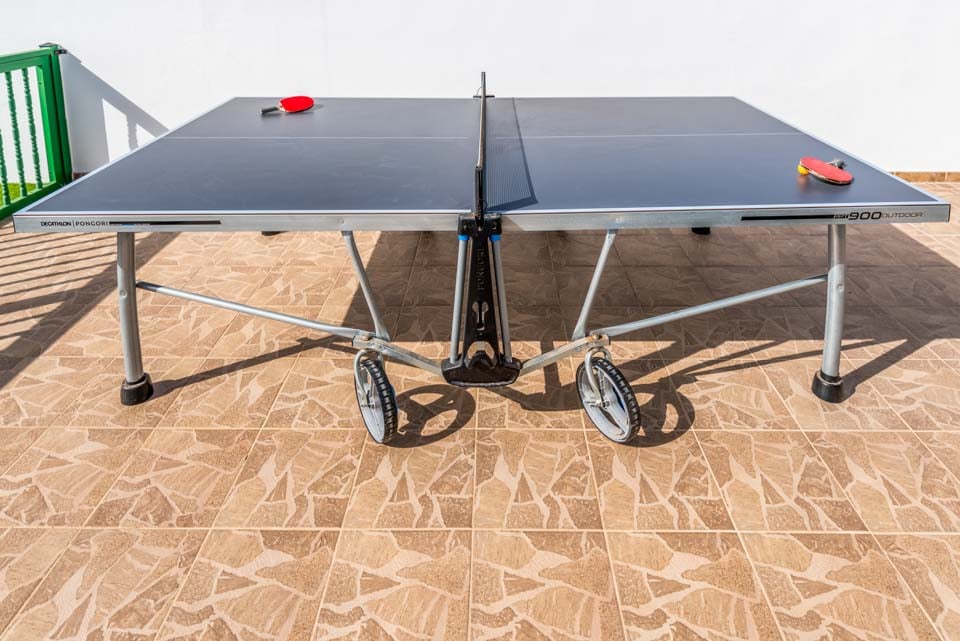 Denna fastighet på bottenvåningen är idealisk för mindre grupper och har tre luftkonditionerade sovrum. Utomhus är terrassen den perfekta platsen för avkoppling i solen, eftersom den privata uppvärmda* poolen omges av vilstolar. Som en extra fördel är poolen också omgiven av ett trädgårdsstaket och en liten grind, vilket innebär att poolen kan separeras från resten av terrassen. Koppla av i stil under den färgglada verandan med ett glas hemlagad sangria, eller njut av en tävlingsinriktad omgång bordtennis med vänner och familj. Inuti har detta hemtrevliga boende en mysig loungedel med altandörrar i fransk stil som leder ut till terrassen och en smart-TV. Köket är modernt inrett med alla de senaste vitvarorna och ett litet matbord. Det finns totalt tre sovrum, två tvåbäddsrum och ett dubbelrum som alla delar ett separat duschrum och ett komplett familjebadrum.