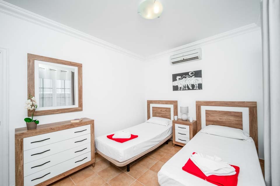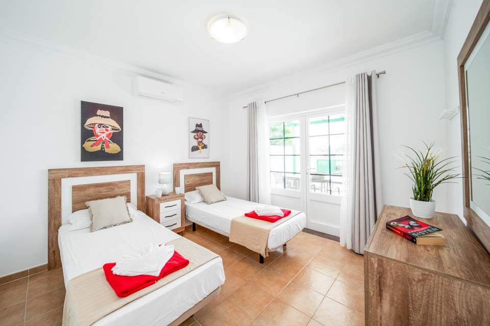Enkelsängar, luftkonditionering, dörrar till terrass