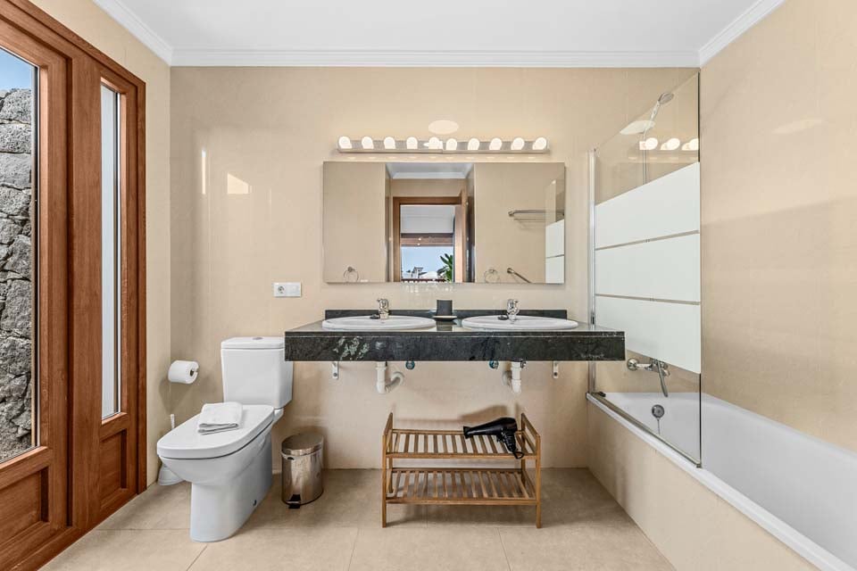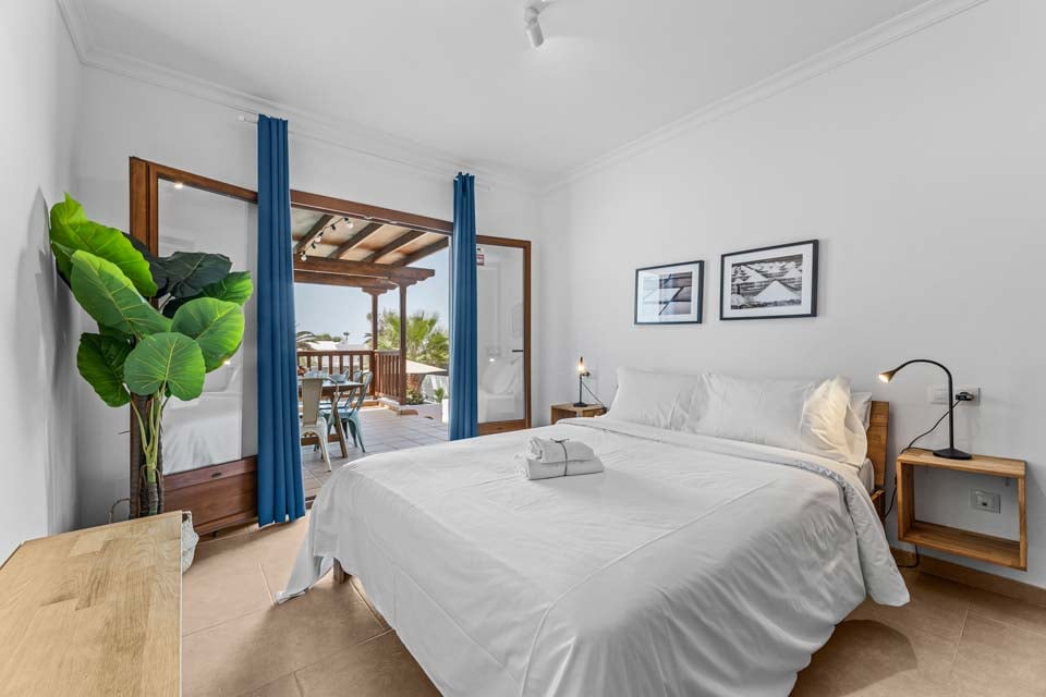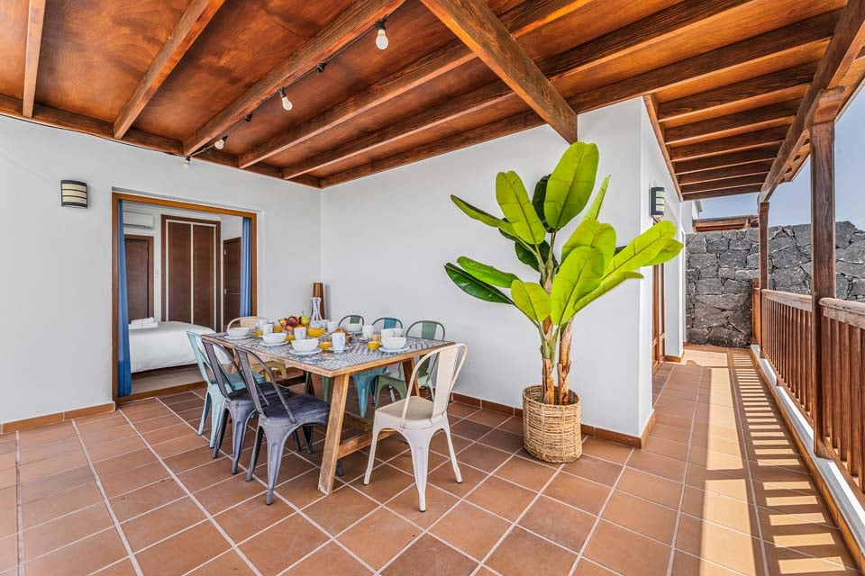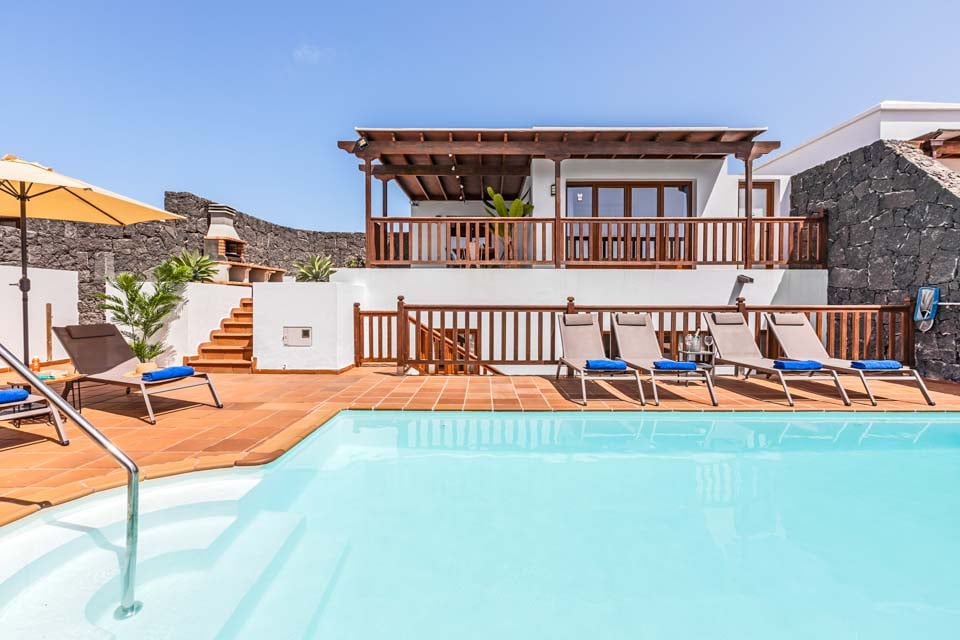 Säg Heja till Villa Rosalia. Beläget i Playa Blanca, är denna fastighet med biltillval ett utmärkt val för upp till åtta gäster. Med fyra sovrum fördelade på två våningar är denna villa perfekt för både vänner och familjer. Vi älskade terrassen, med den uppvärmda* poolen i centrum, kantad av solstolar och omgiven av en vulkanvägg. För extra bekvämlighet finns det en dörr som leder från terrassen till stigen utanför, vilket gör utflykter till butik, strand och restauranger mycket snabbare. Några steg till den övre terrassen hittar du den tegelbyggda grill- och matlagningsplatsen, som ligger bredvid den skuggiga uteserveringen.