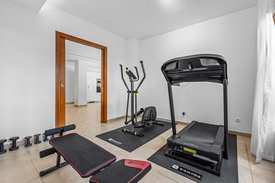 Löpband, Crosstrainer, Luftkonditionering, Dörrar till terrass