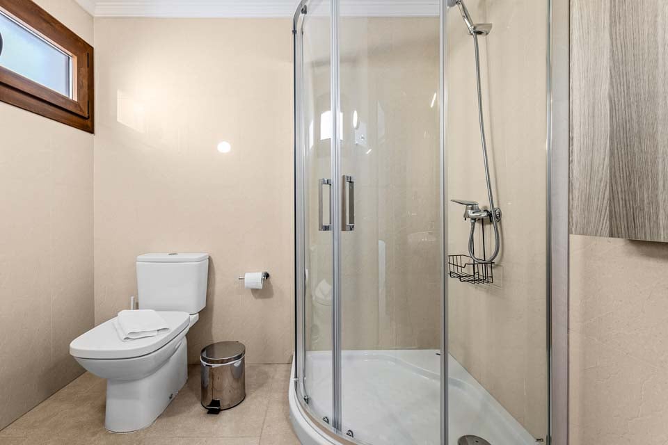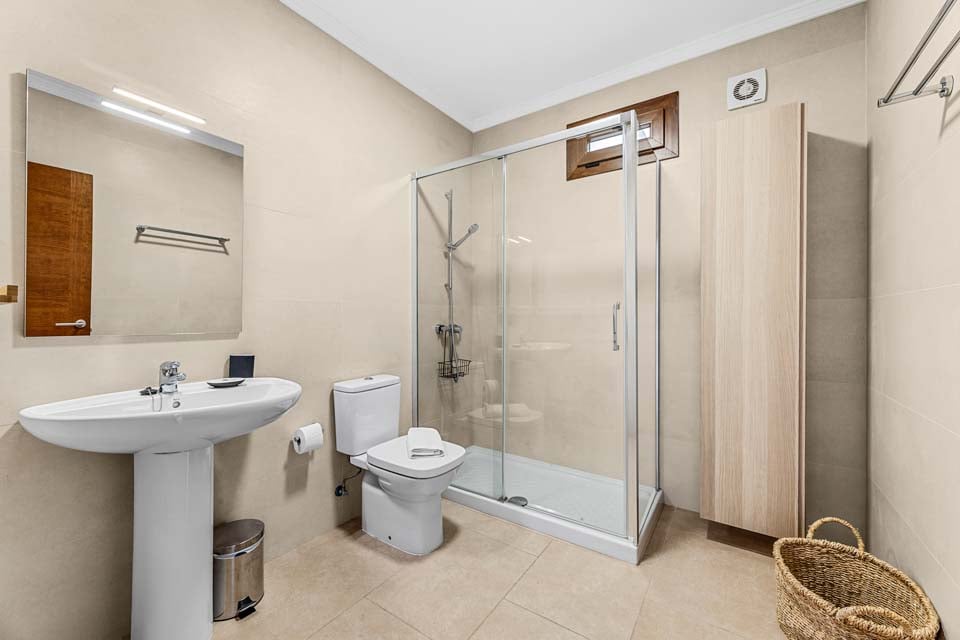 Denna villa ligger i ett lätt kuperat område i Playa Blanca. För att komma till villan finns en stig som är 122 cm bred tillsammans med 19 trappsteg. Ytterdörren har en bredd på 89 cm, medan dörren till terrassen är 122 cm bred. Terrassen är öppen planlösning och kaklad med 8 trappsteg ner till poolkanten. Som framgår av bilderna är terrassen i två plan. Själva poolen har stegåtkomst med ett ledstång för stöd. Du kommer in i fastigheten på bottenvåningen. Dörren till sovrummet på bottenvåningen är 69 cm bred, medan dörren till sovrummet i badrummet också är 69 cm bred. Dörren in till kök/matplats är 97 cm bred och dörren in till vardagsrummet är också 97 cm bred. *Observera att även om vi har gjort allt för att säkerställa att informationen som lämnas är korrekt, kan fel uppstå och om du behöver mer specifik information om villan, tveka inte att kontakta oss.
