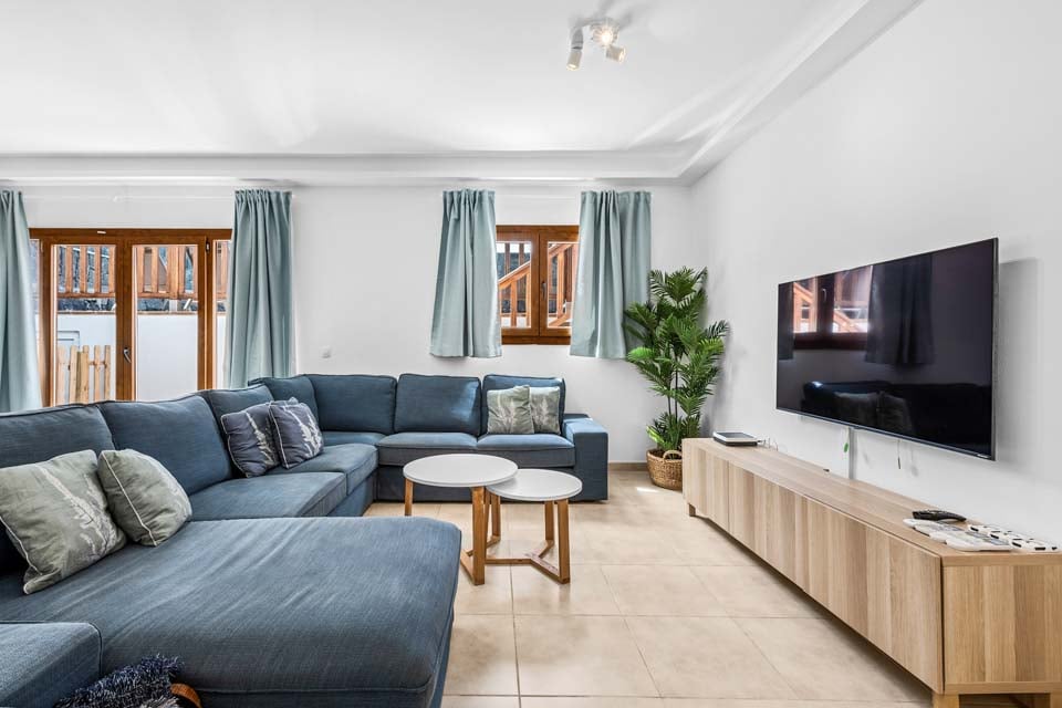 Bekväm sittgrupp, Smart-TV, Öppen planlösning, Dörrar till terrass, Luftkonditionering