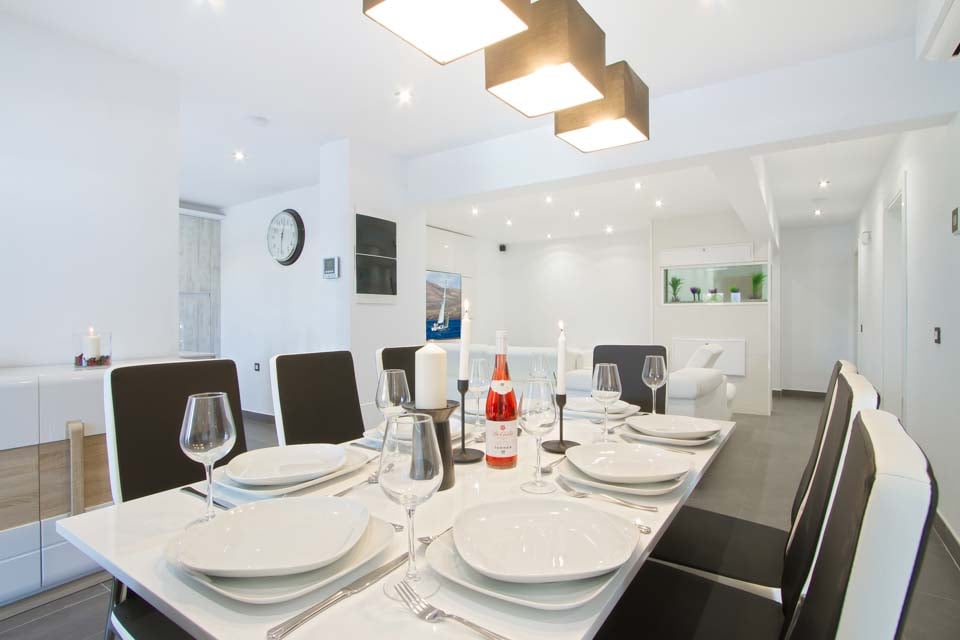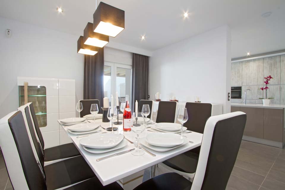Bekväm sittgrupp, Smart-TV, Spelkonsol, Matplats, Luftkonditionering, Dörrar till terrass
