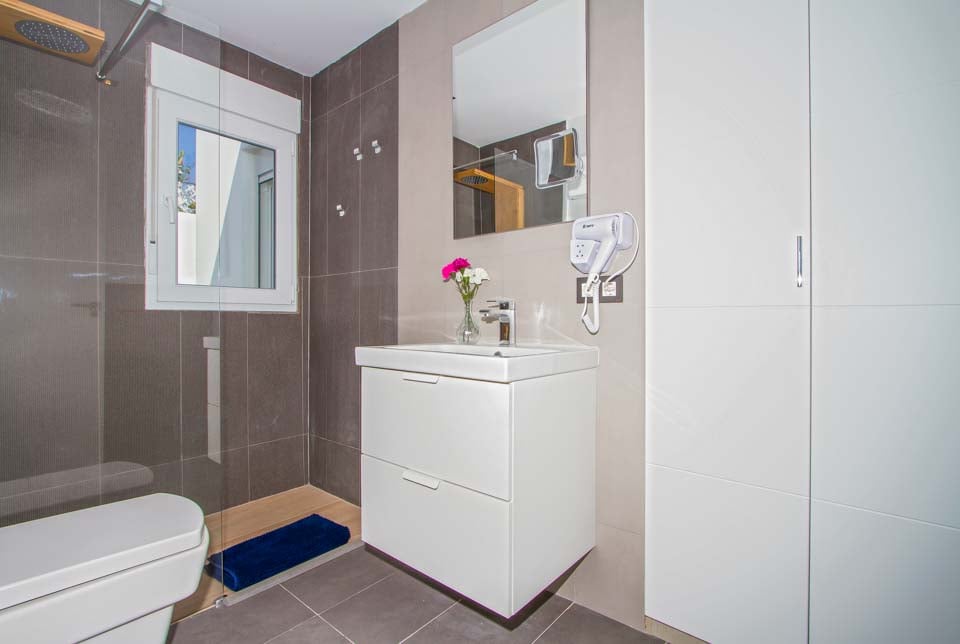 Observera att denna villa ligger i ett kuperat/bergigt område som heter Montana Roja. För att komma till villan finns en 80 cm bred stig tillsammans med 3 trappsteg. Ytterdörren har en bredd på 100 cm, medan dörren till terrassen är 130 cm bred. Det finns ett 3 cm trappsteg över altandörren. Terrassen är öppen planlösning, plan och kaklad. Själva poolen har stegåtkomst med ett ledstång för stöd. Detta är en fastighet på bottenvåningen. Alla sovrum har en dörrbredd på 80 cm, medan alla badrum har en dörrbredd på 80 cm. Dörren in till kök/matplats är 110 cm bred och dörren in till vardagsrummet är också 90 cm bred. *Observera att även om vi har gjort allt för att säkerställa att informationen som lämnas är korrekt, kan fel uppstå och om du behöver mer specifik information om villan, tveka inte att kontakta oss.