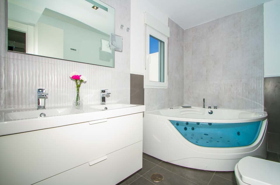 Badkar, Bubbelbadkar, Toalett, Handfat, Dubbel, Dubbla handfat