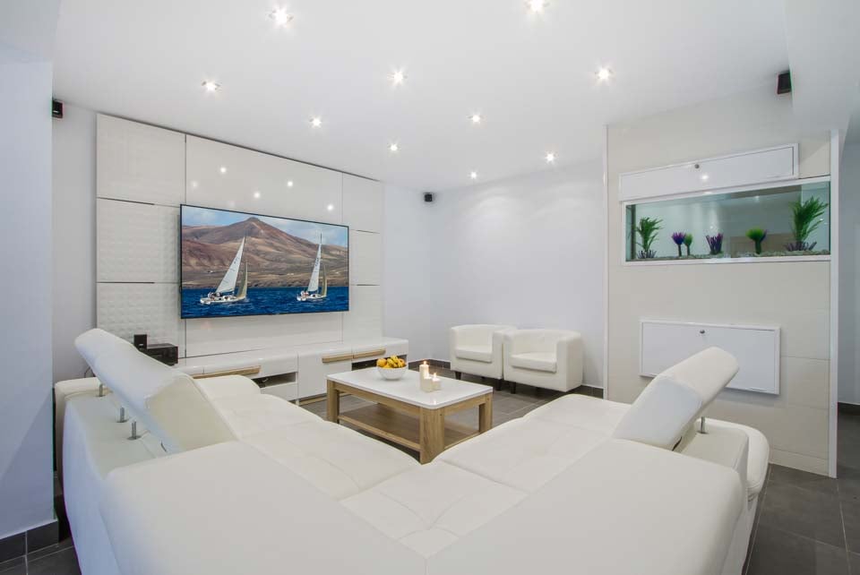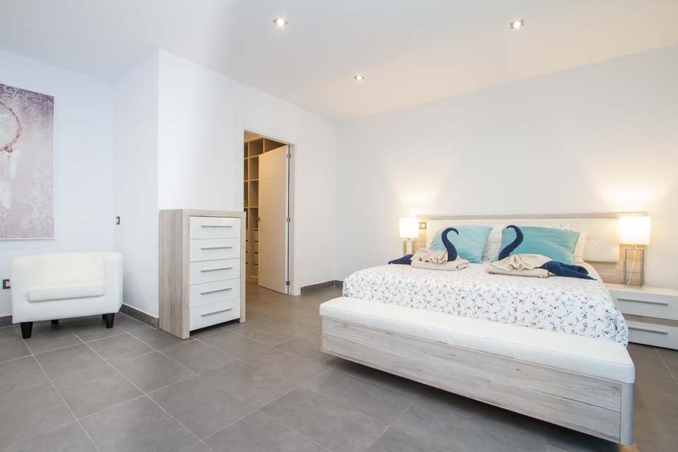 Villa Sueno är en fantastisk villa som har möblerats av ägaren för att ge Solmars gäster en exceptionell villa-semesterupplevelse. Denna villa med fyra sovrum och fem badrum är luftkonditionerad och alla sovrum har egen platt-TV. Det moderna och fullt utrustade köket med en stor köksö är öppet mot det rymliga vardagsrummet med en stor platt-TV med Netflix-konto och spelkonsol. Matbordet här kan även omvandlas till ett biljardbord för extra familjeunderhållning. Altandörrar leder dig till ditt utomhusutrymme med en stor pergola och en hörnsoffa i rotting med ett bordtennisbord för att underhålla hela familjen. Den specialdesignade friformade poolen är höjdpunkten i denna villa, romerska trappor leder dig in och poolen har en vattenfunktion och löper runt sidan av villan, som också har en nedsänkt bubbelpool på sidan. På bortre sidan av villan hittar du ett litet gym med platt-TV och luftkonditionering, här hittar du även en liten bastu. Koppla av och njut av alla faciliteter som denna fantastiska villa har att erbjuda.